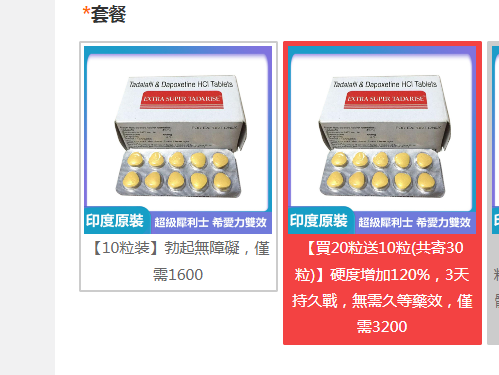 ①犀利士30粒②超級必利勁1粒