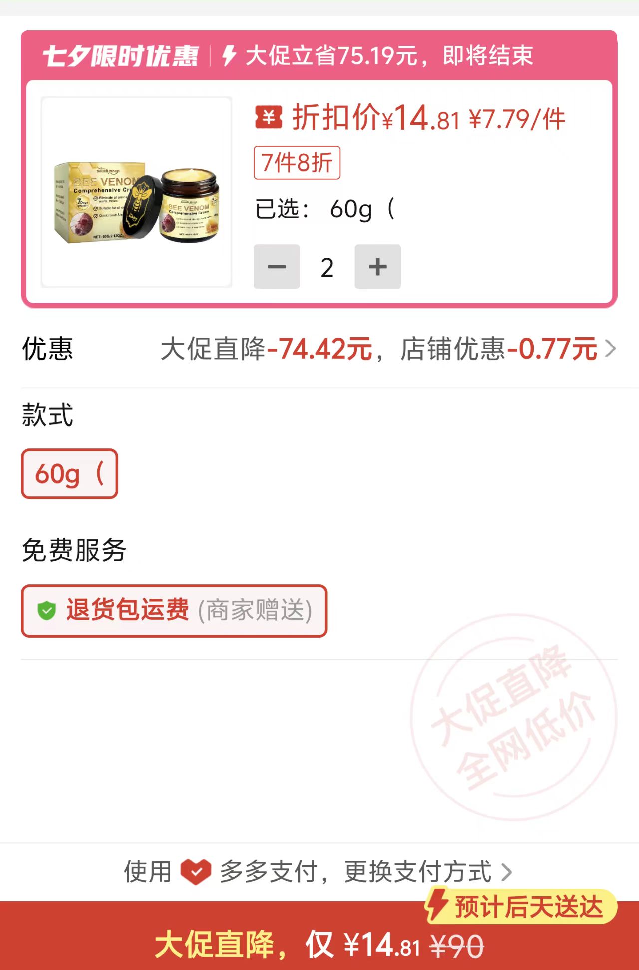 蜂毒皮膚護理霜【兩瓶】https://mobile.yangkeduo.com/goods.html?ps=97poteqX3V