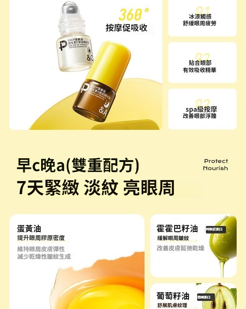 【官方】蛋黃油早C晚A眼部精華油抗皺緊致淡細紋保濕舒緩滾珠眼霜 NT$ 890