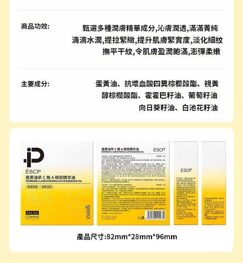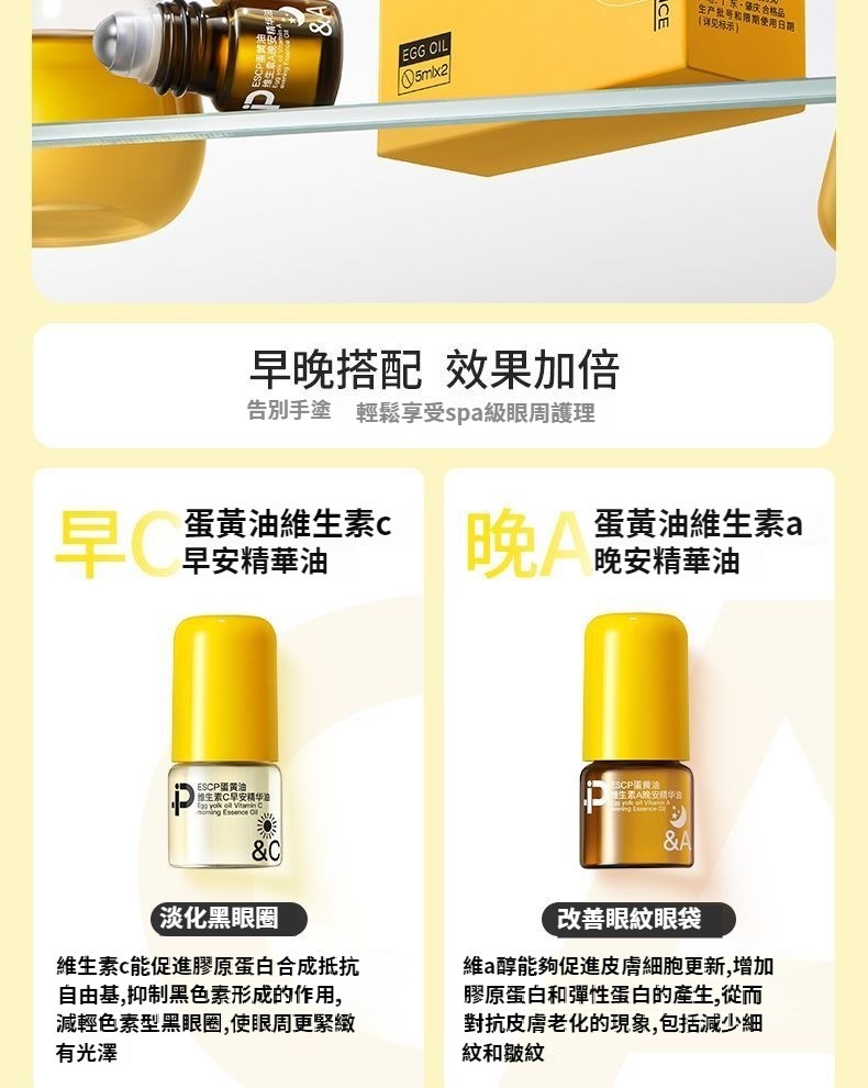 【官方】蛋黃油早C晚A眼部精華油抗皺緊致淡細紋保濕舒緩滾珠眼霜