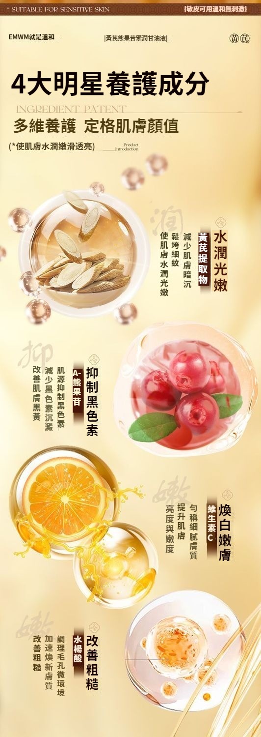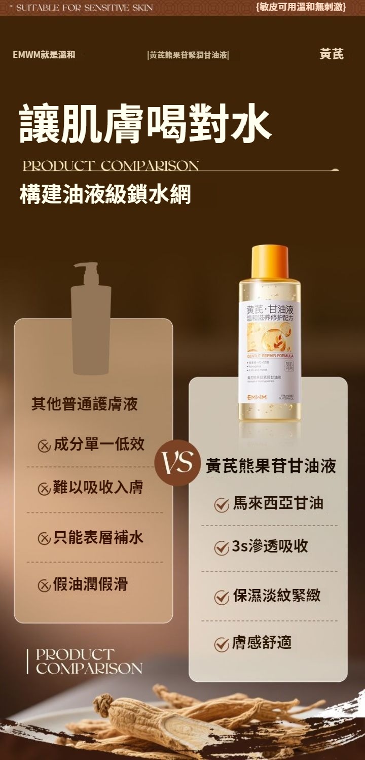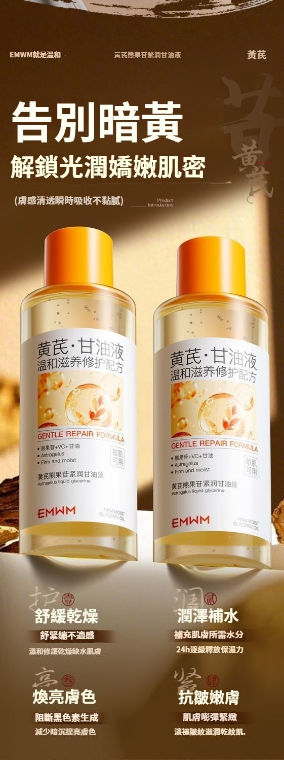 黃芪甘油液抗皺去黃保濕抗衰老淡化細紋提拉緊致女
