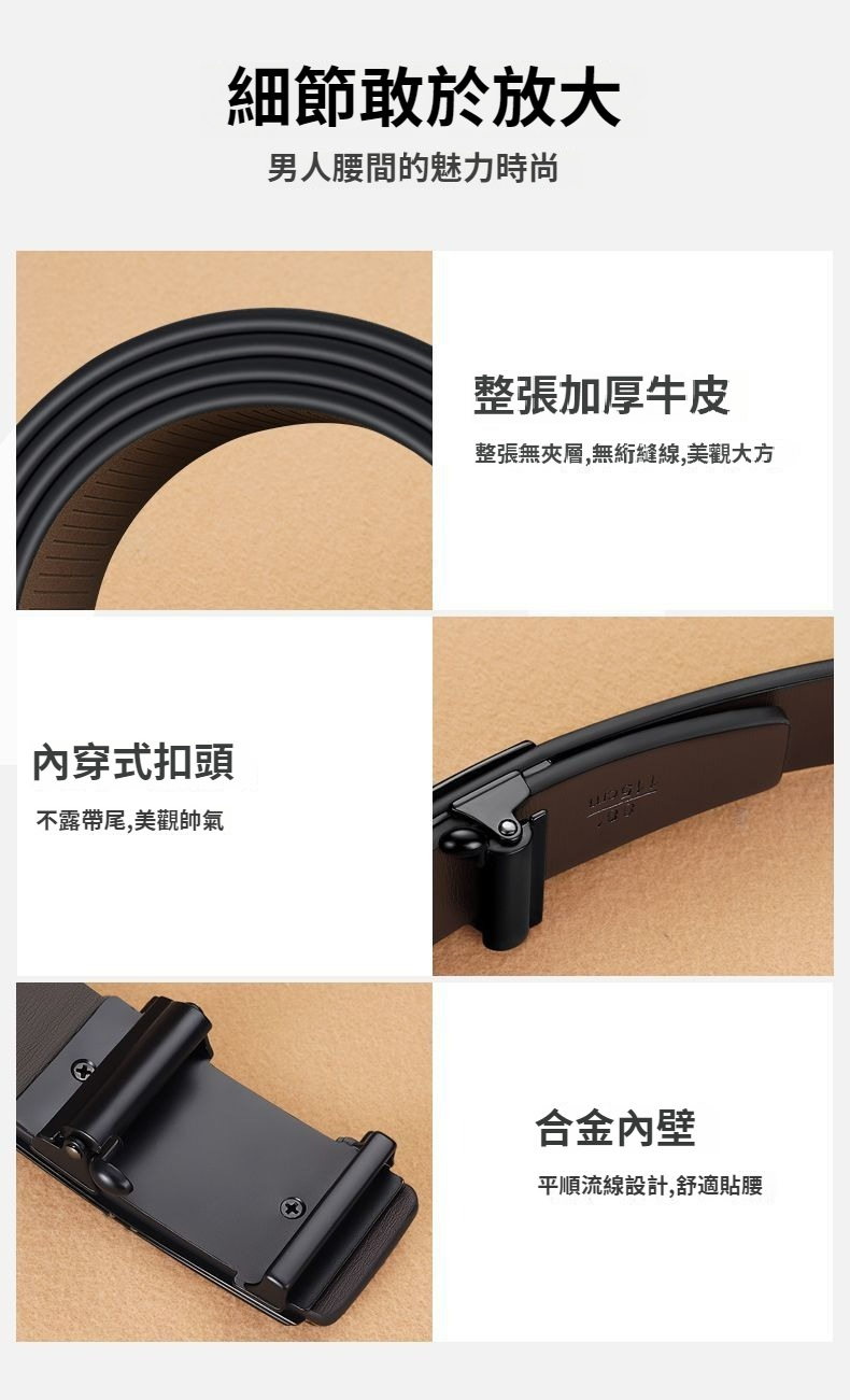 第 1 件 : 皮帶男士皮帶商務休閒通勤無牙內穿自動扣真皮