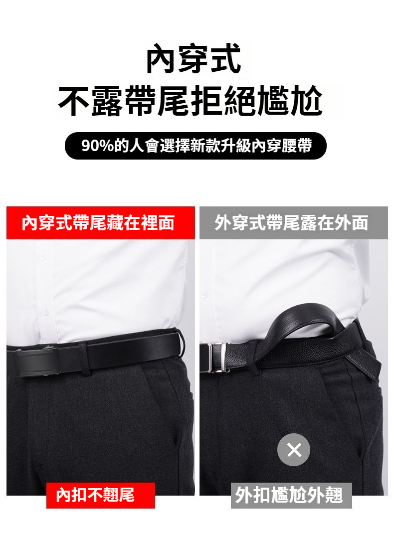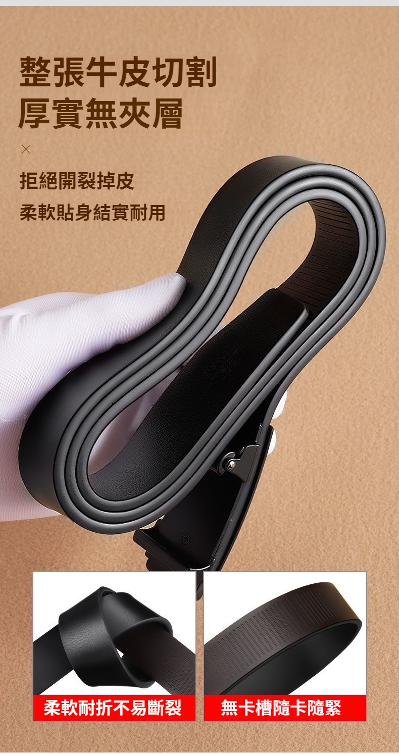 無牙皮帶男士,皮帶商務休閒通勤內穿自動扣真皮