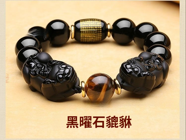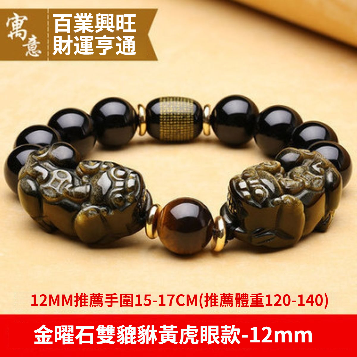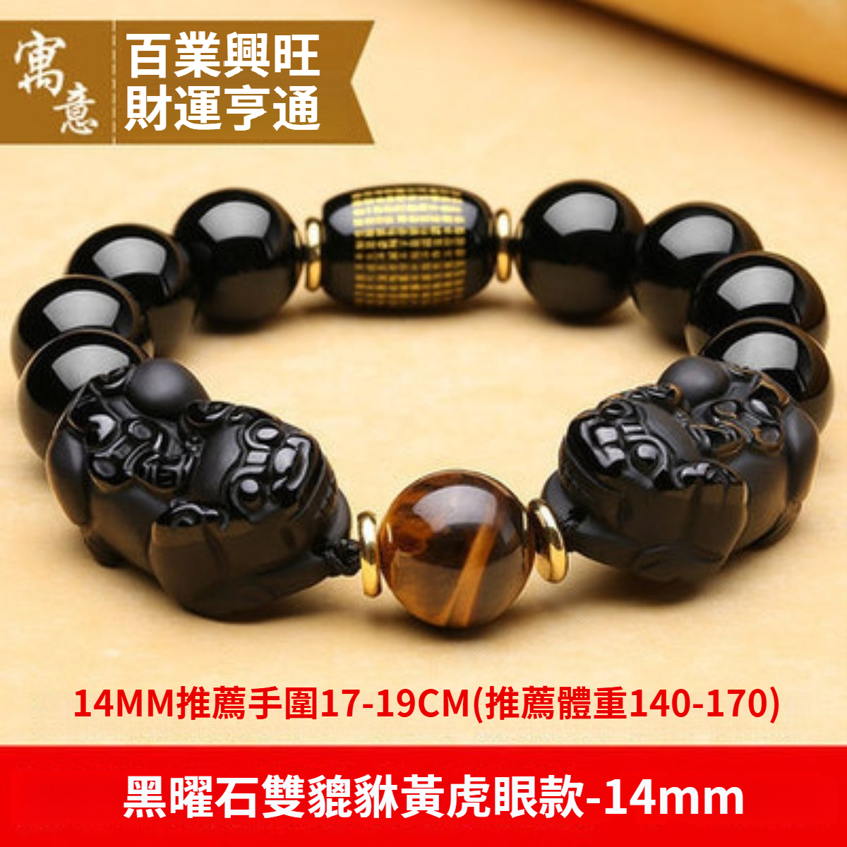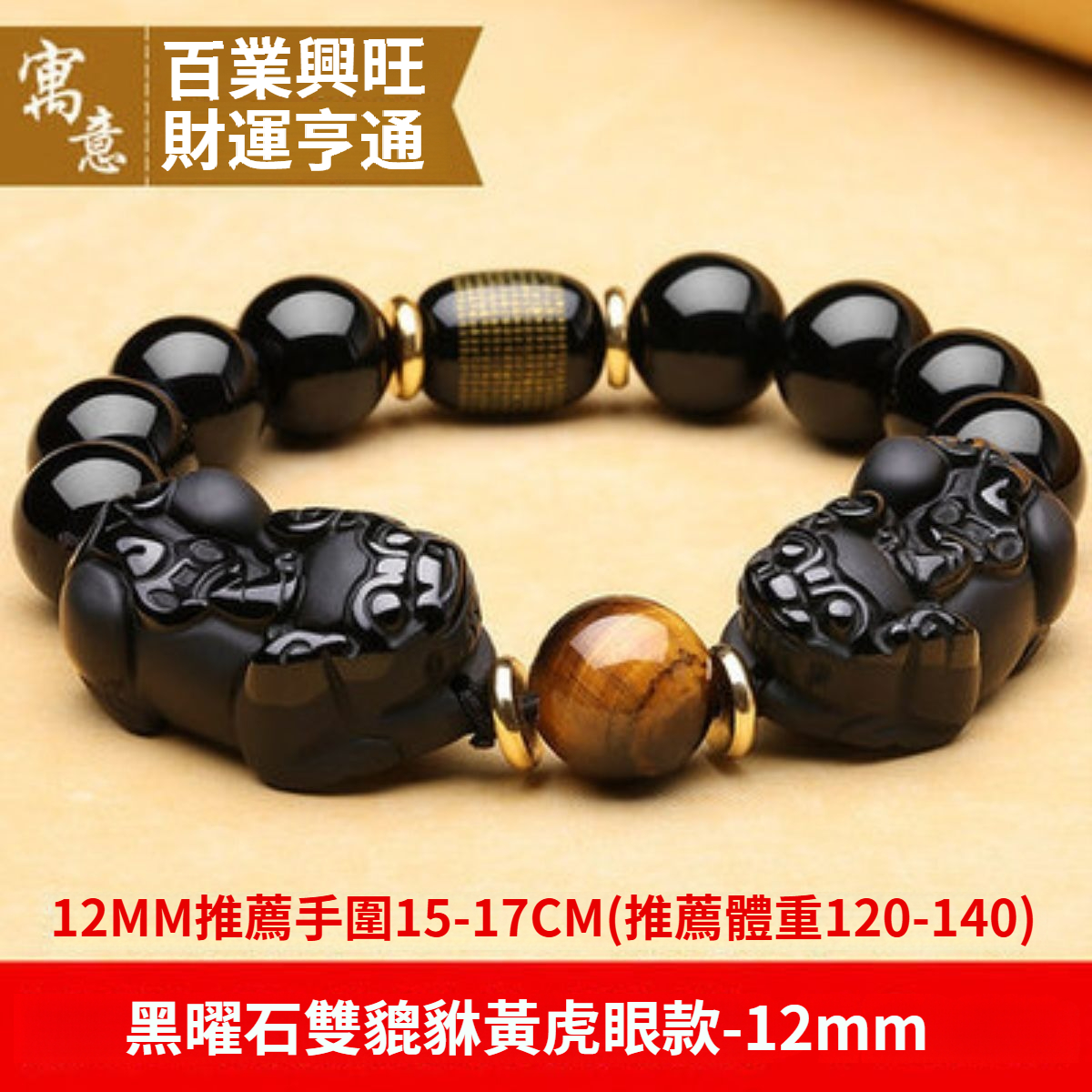 第 2 件 : 天然黑曜石雙貔貅手鍊佛珠皮丘虎眼石彩眼石手串