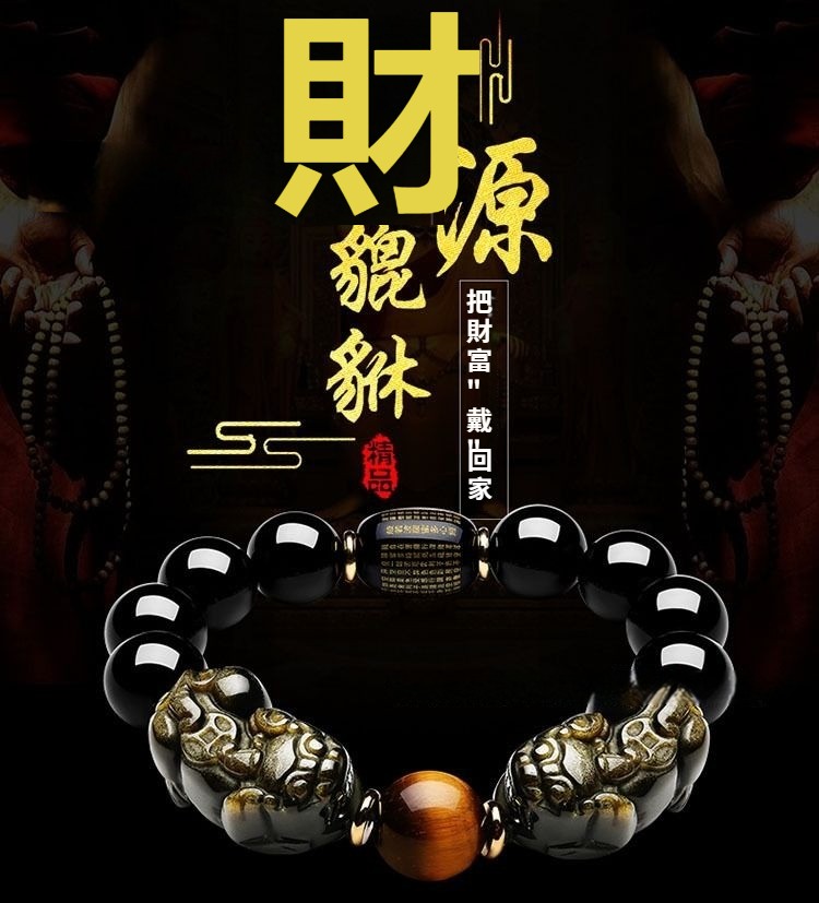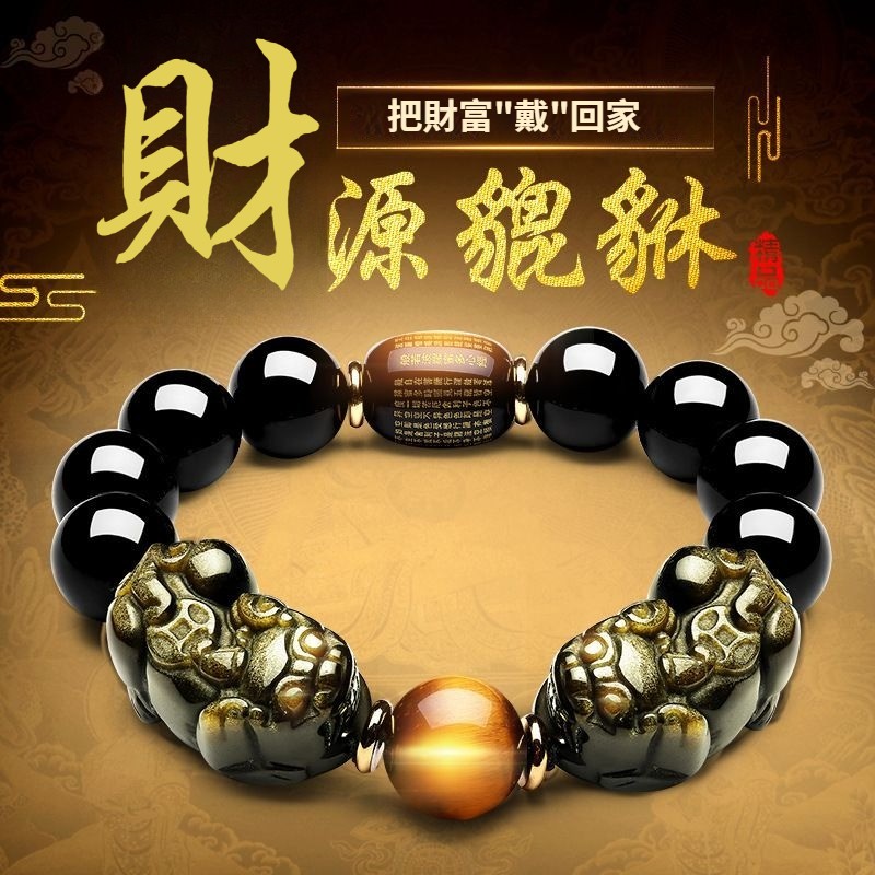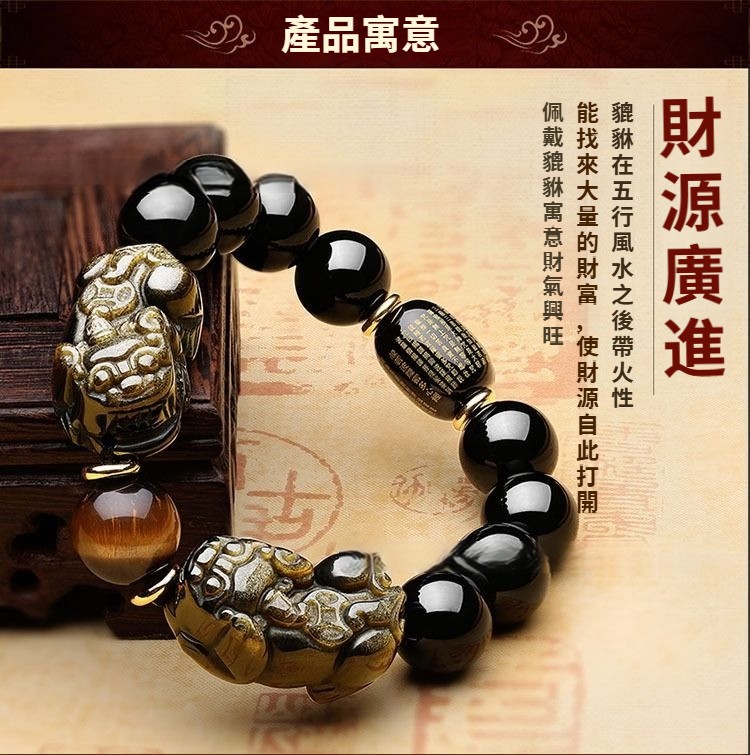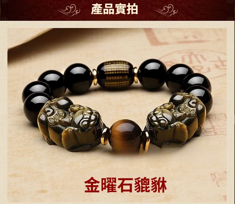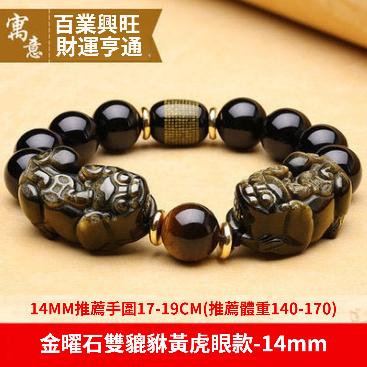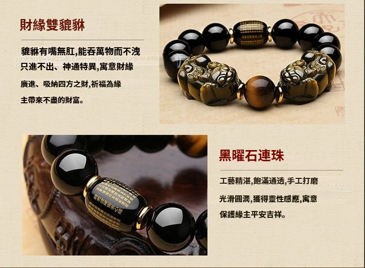 第 2 件 : 天然黑曜石雙貔貅手鍊佛珠皮丘虎眼石彩眼石手串