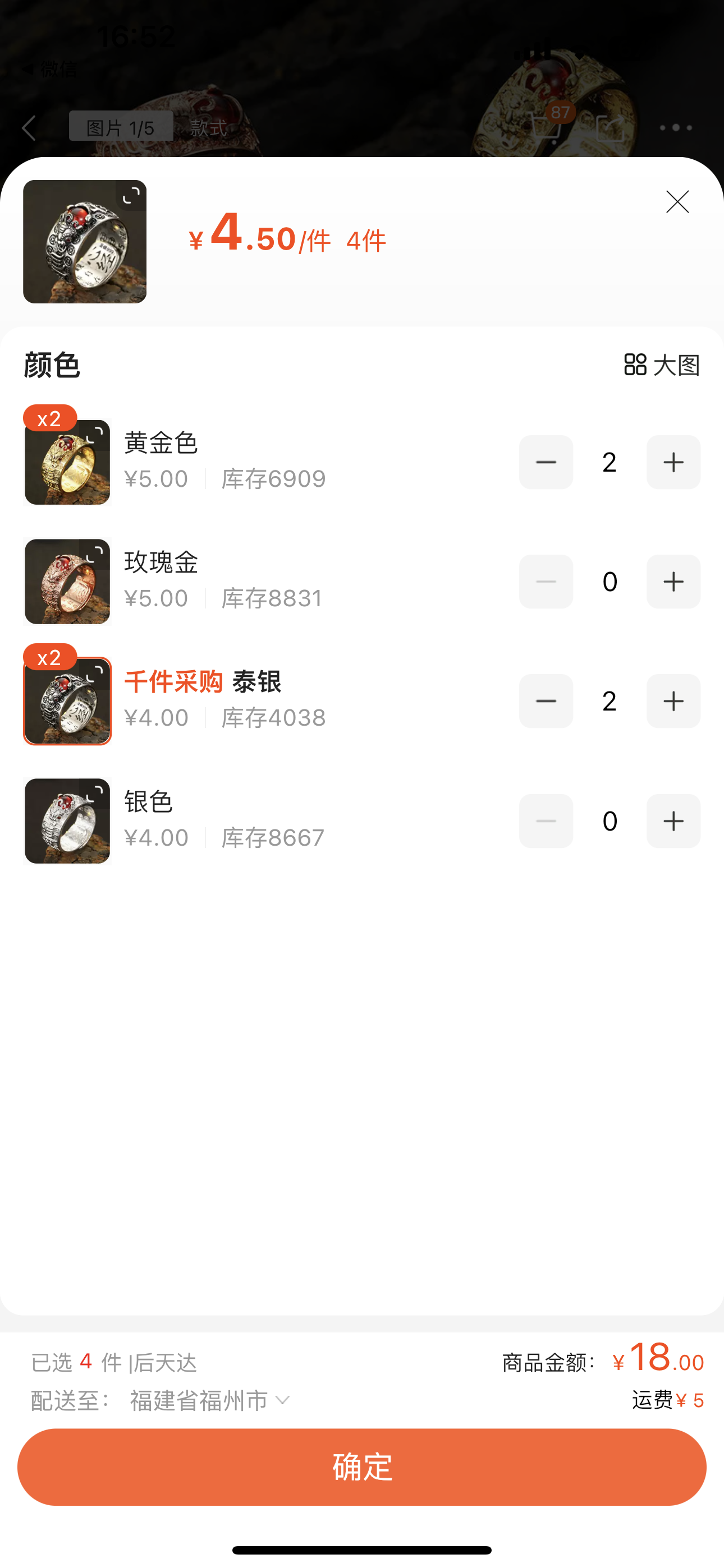 開運背財貔貅戒指泰銀2个 黃金色2个 犀利士1粒