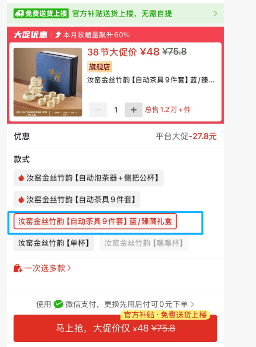 ①汝窑金丝竹韵【自动茶具9件套】蓝/臻藏礼盒 1套