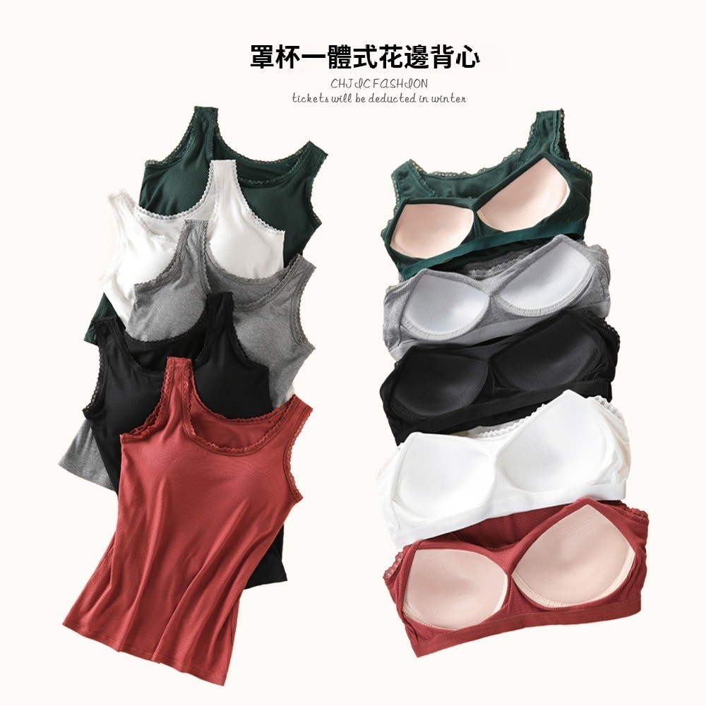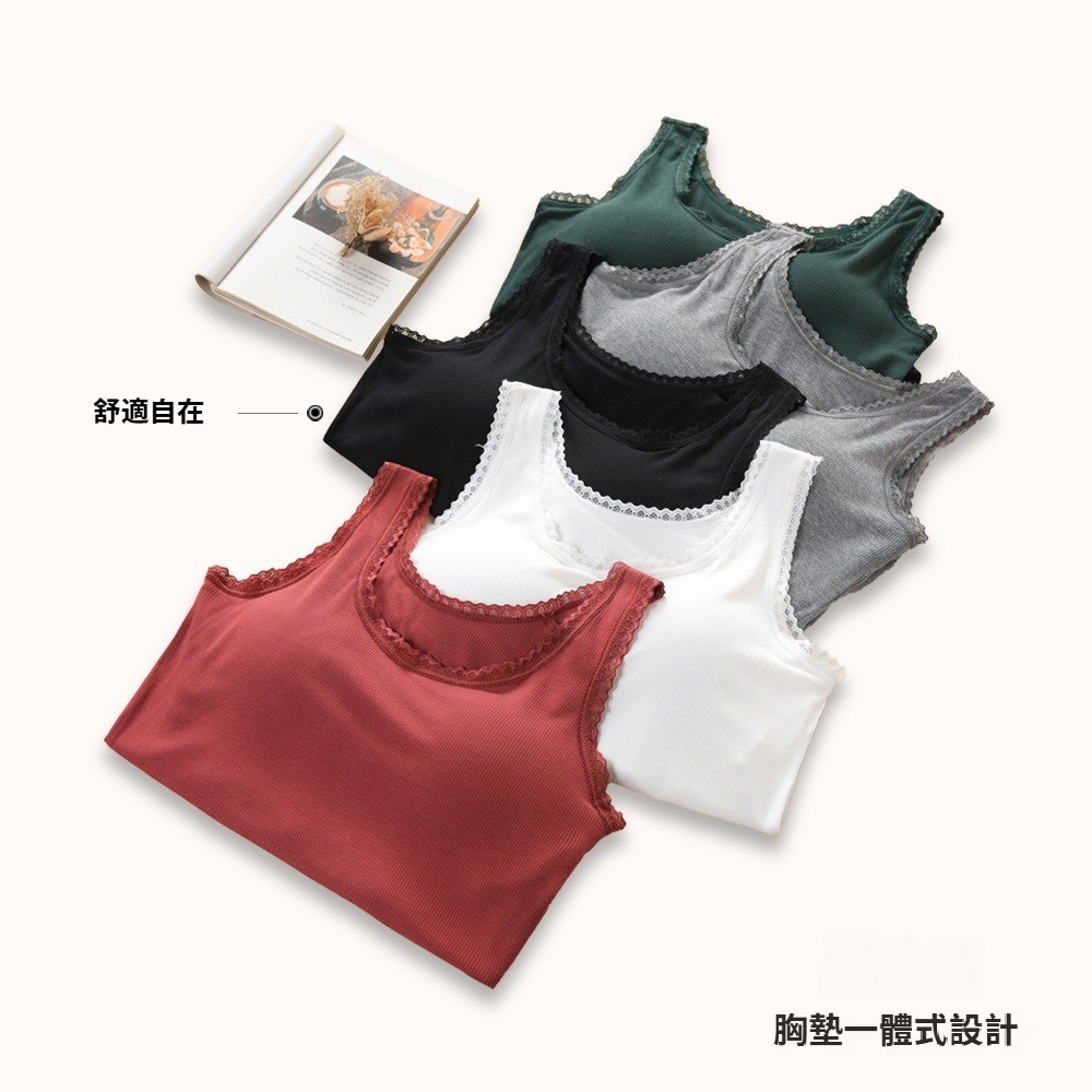 帶胸墊一體式文胸背心女內衣打底衫女士寬松大碼多色可選