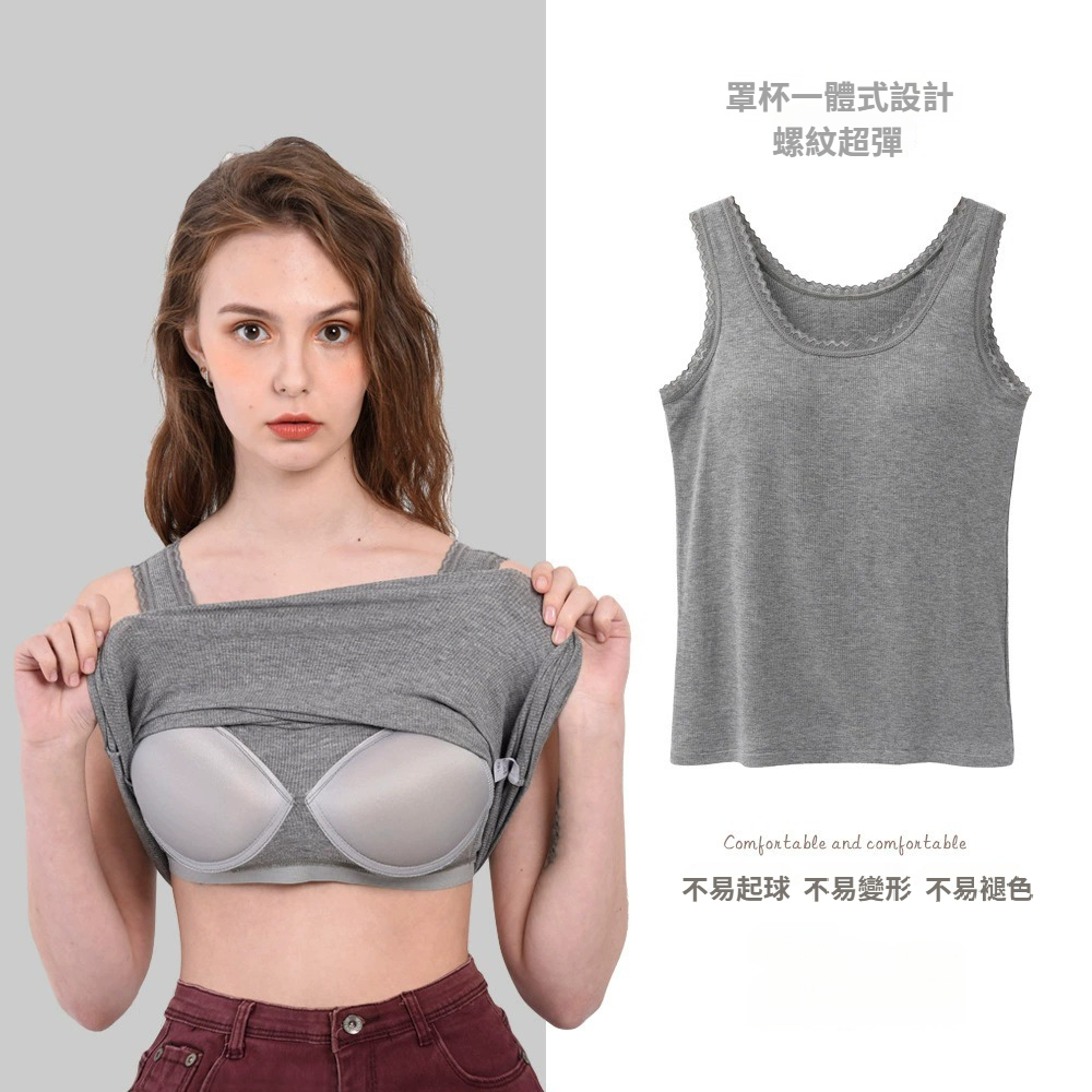 第 1 件 : 帶胸墊一體式文胸背心女內衣打底衫女士寬松大碼多色可選