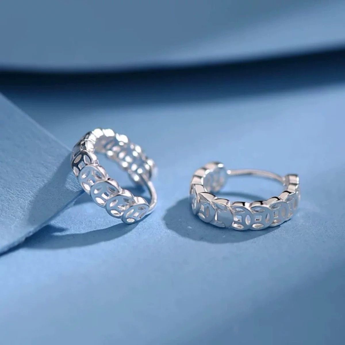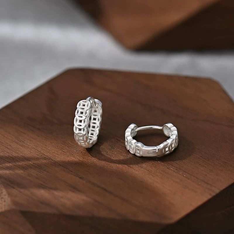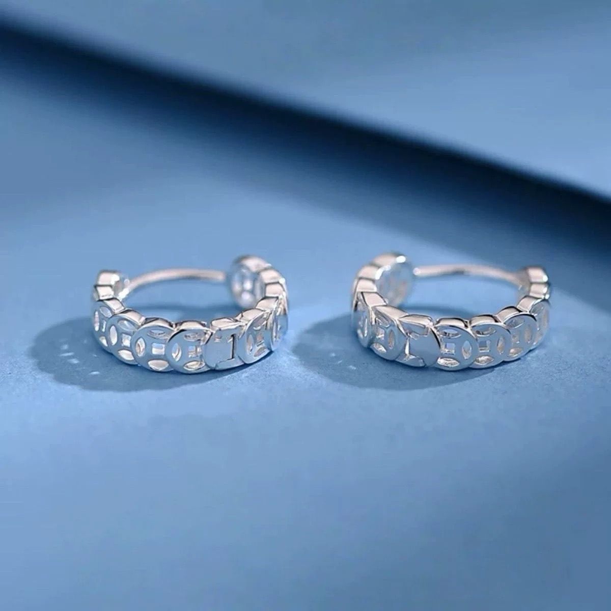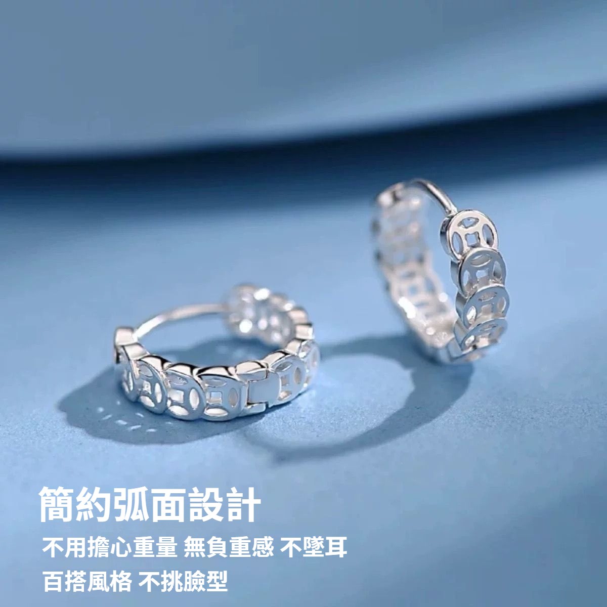 【足銀999】新款錢多多耳環招財轉運鏤空錢幣暴富耳圈養耳洞耳飾