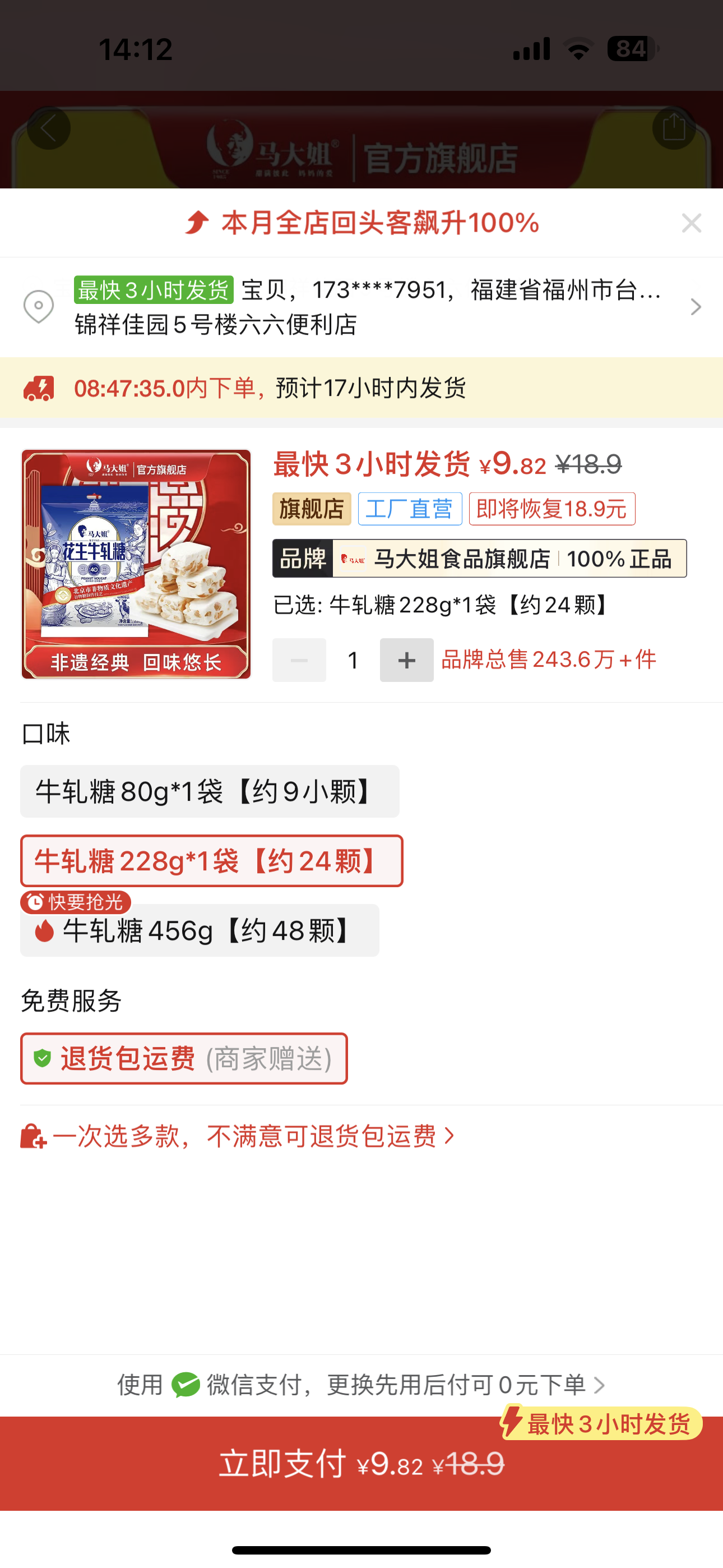①橘紅顆粒5盒+②花生牛軋糖1包24顆