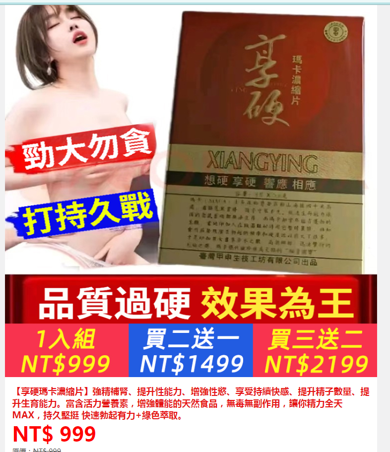 ①啪啪丹女性快感凝露3盒+②享硬瑪卡濃縮片1粒