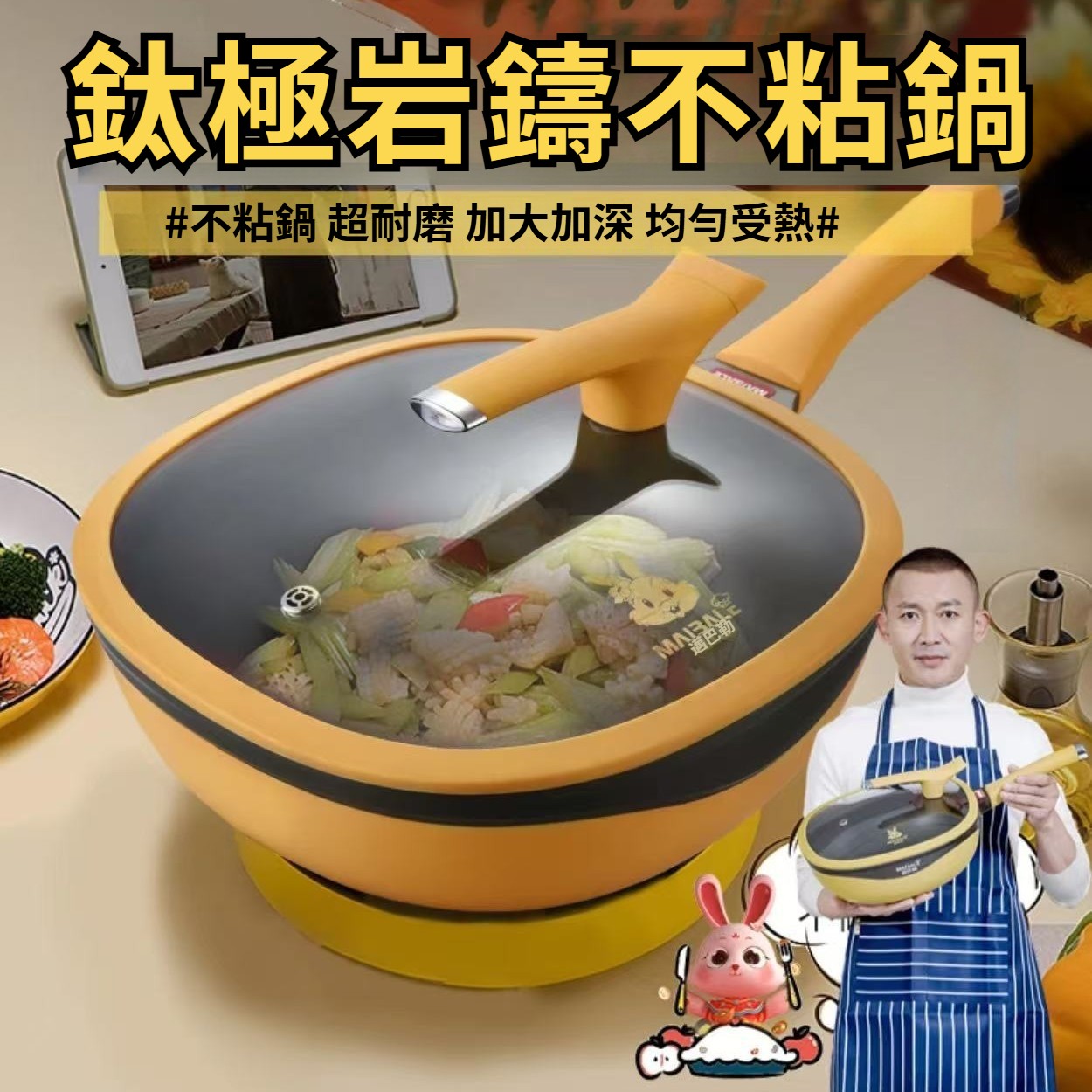 鈦極岩鑄不沾鍋炒菜鍋煤氣爐炒鍋電磁爐家用