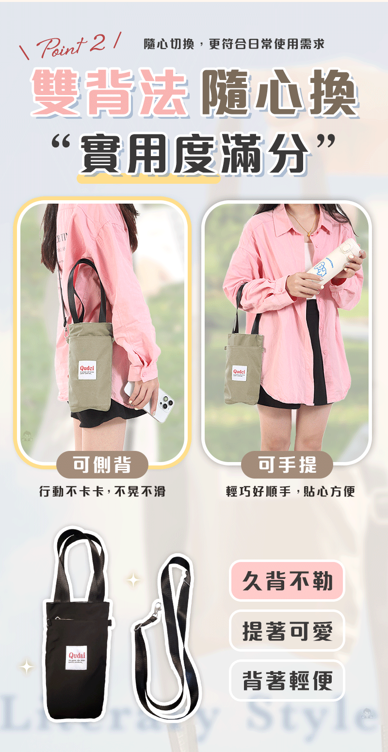 第 2 件 : 輕巧隨行杯袋 - 一袋兩用更方便、手機飲料都能放
