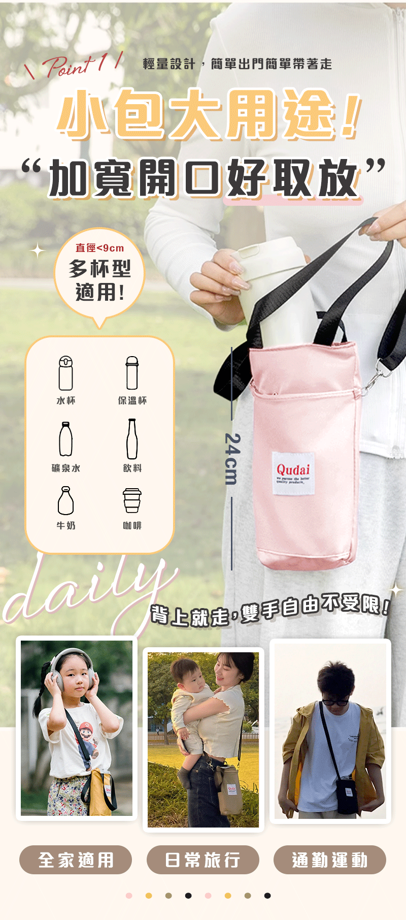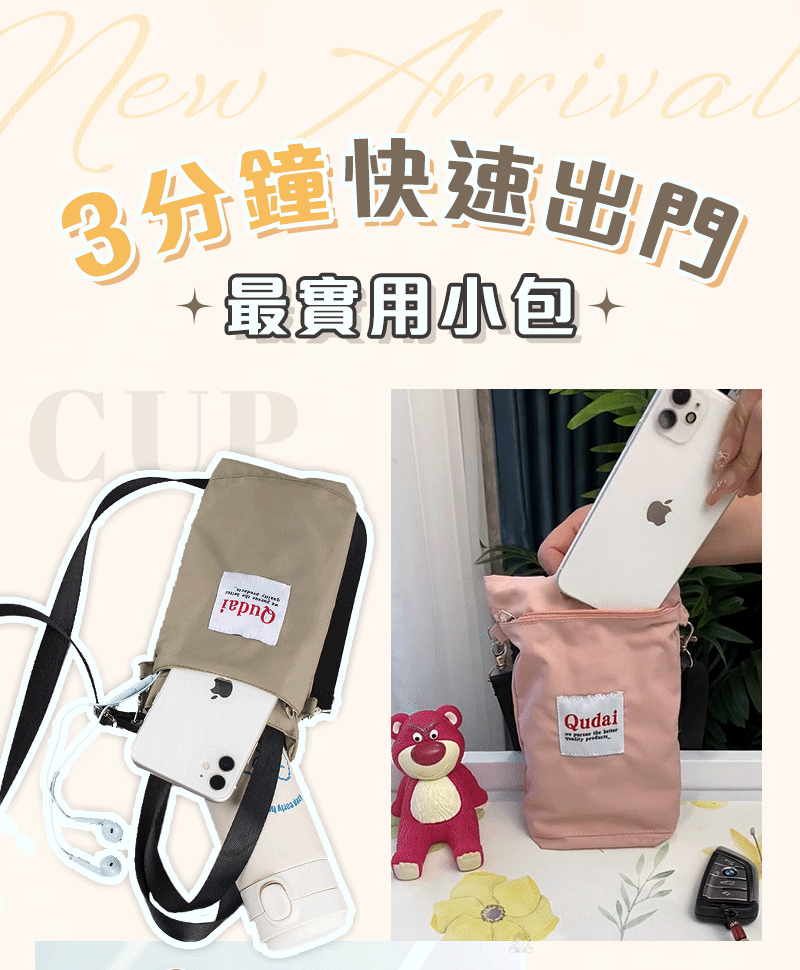 第 1 件 : 輕巧隨行杯袋 - 一袋兩用更方便、手機飲料都能放