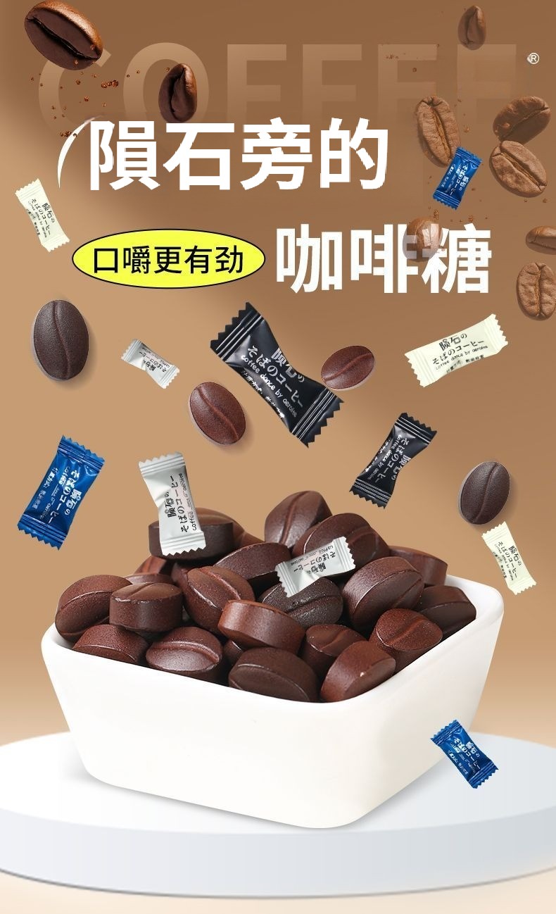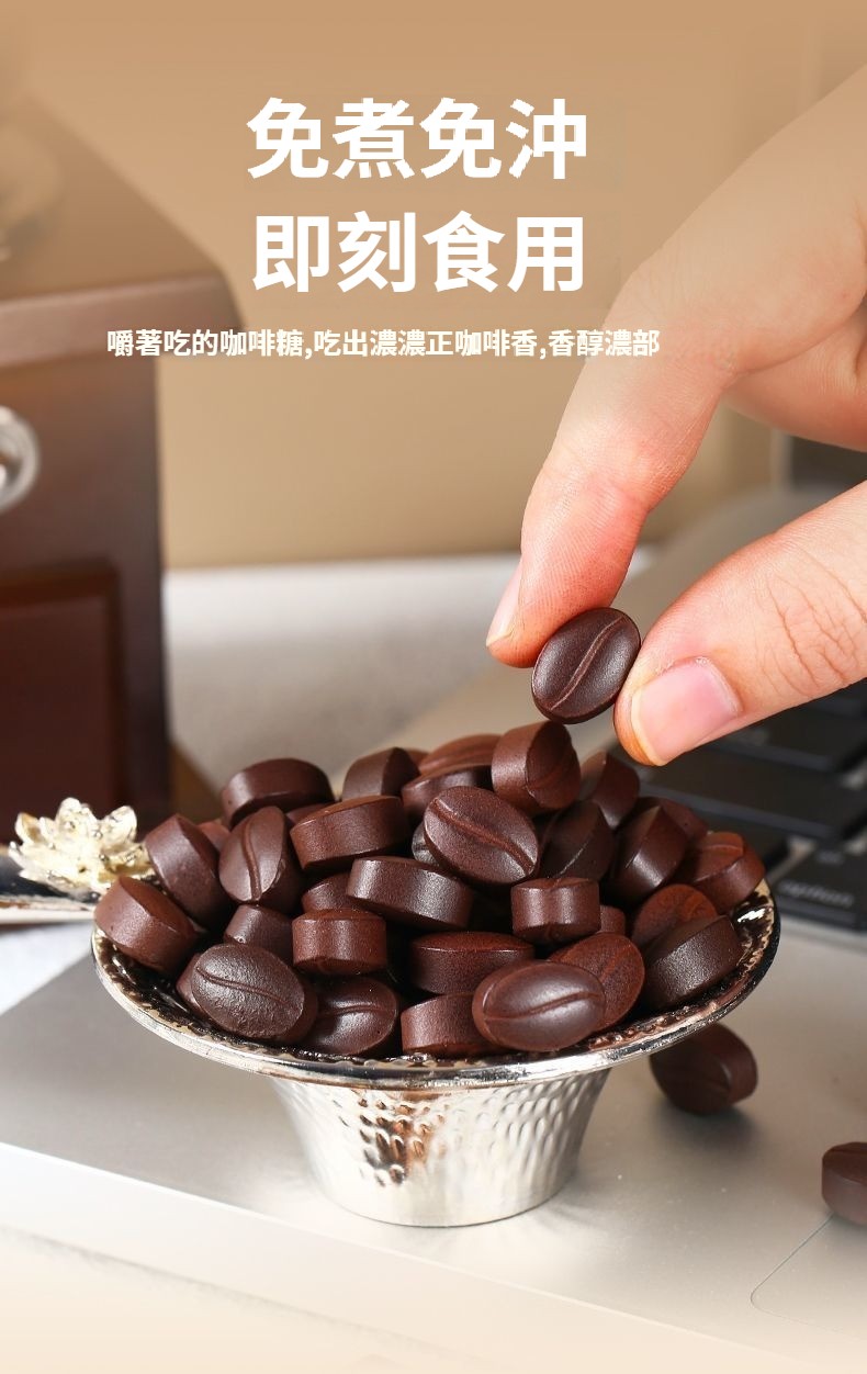 隕石旁的咖啡糖即食黑咖啡豆糖學生上課隨身攜帶可嚼防犯困硬糖果