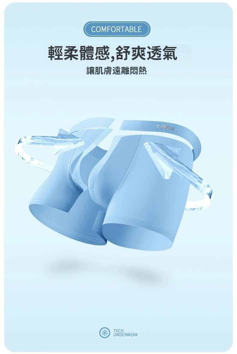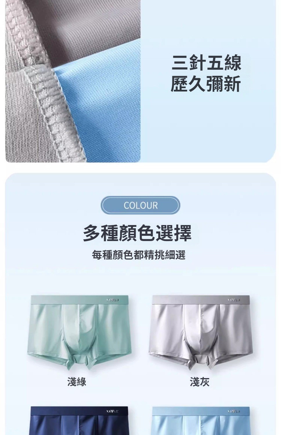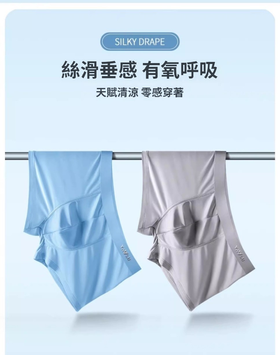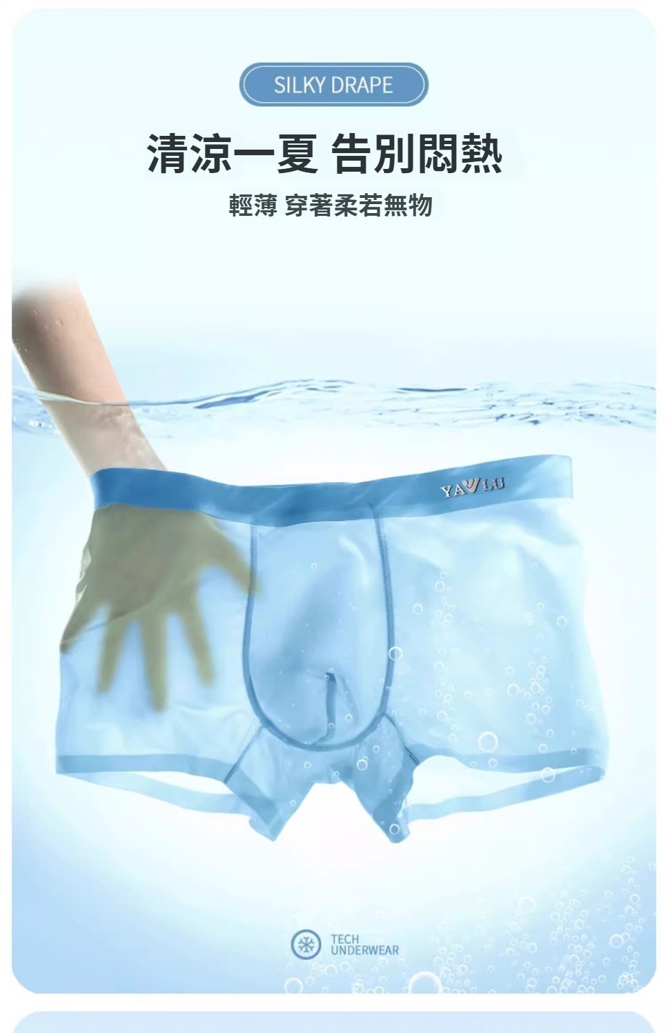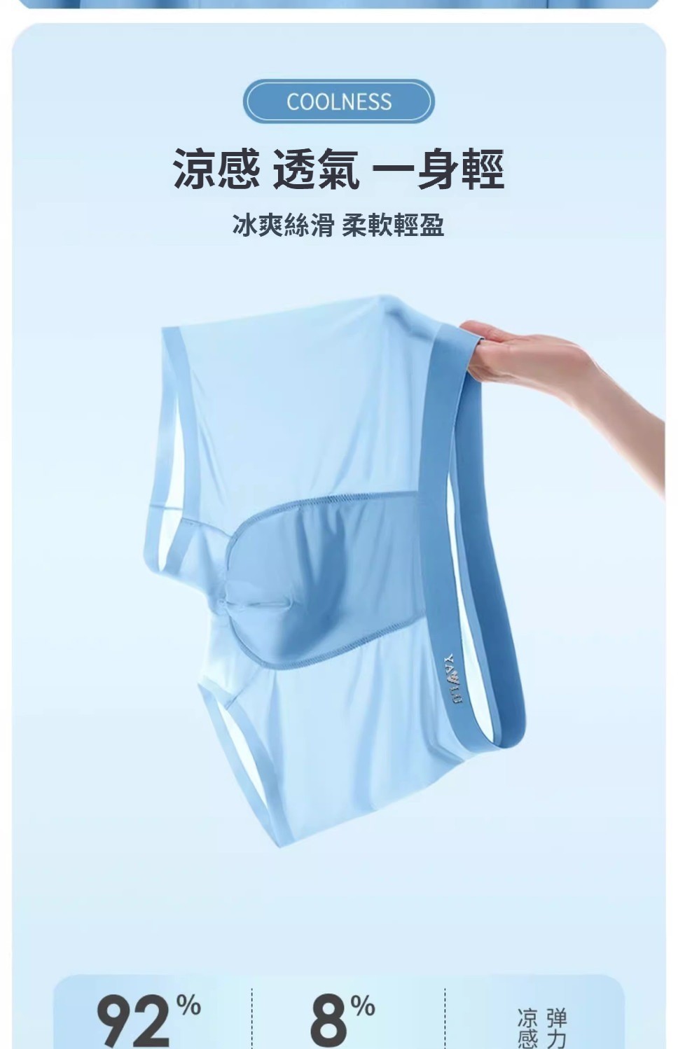 無痕冰絲內褲男士夏季薄款透氣四角,大尺碼短褲120支超細膩錦綸