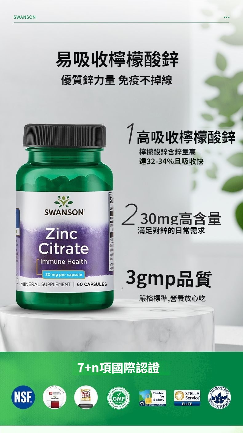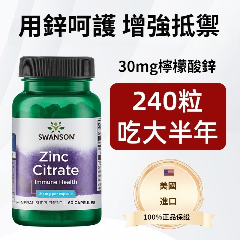 swanson斯旺森檸檬酸鋅60粒補鋅優質高吸收30mg用鋅呵護增強抵禦喚醒活力增強免疫力 NT$ 2099
