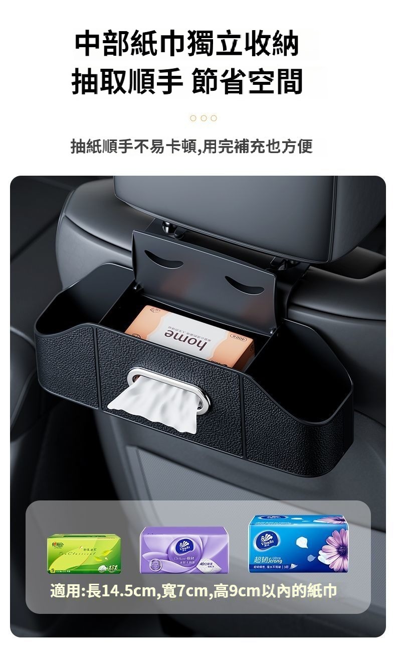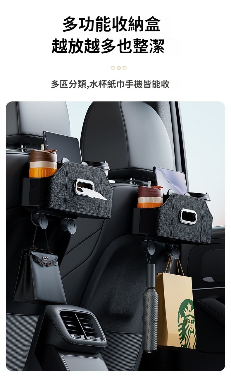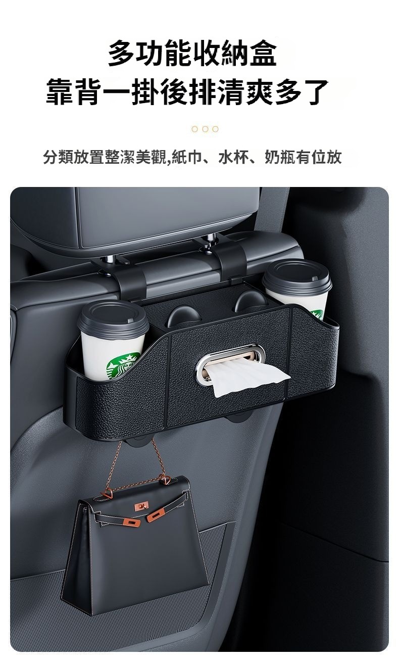 第 1 件 : 車載紙巾盒座椅后背收納盒新款多功能掛式儲物盒杯架汽車收納用品
