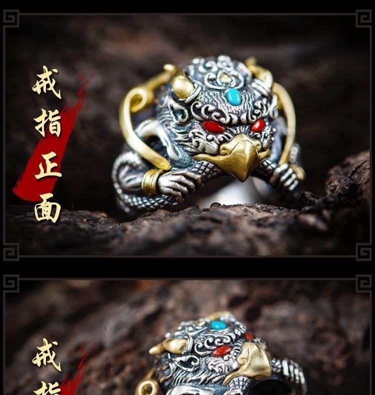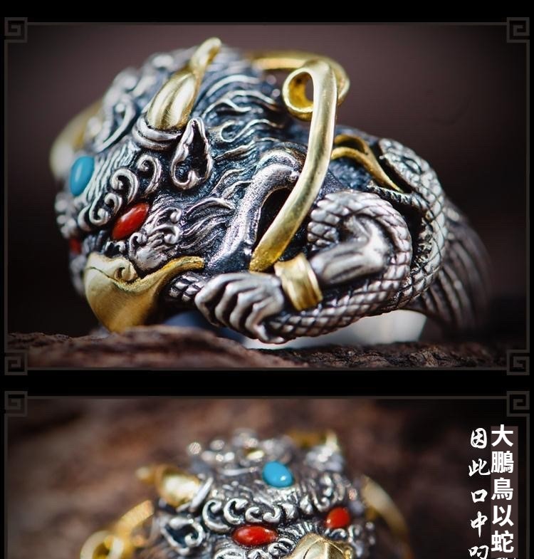 手工S925銀戒指男女開口食指戒大鵬鳥金蟬戒指環復古銀飾潮流 Shǒugōng S925 yín jièzhǐ n NT$ 988
