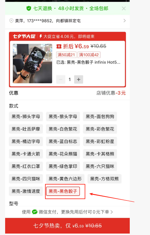 ③手机壳 1个(黑壳-黑色骰子)