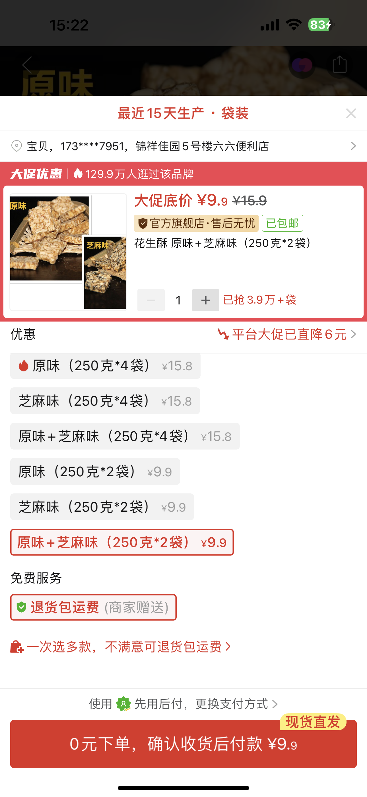 ①悍馬糖一整盒(30顆)+②花生糖原味1袋+芝麻味1袋(309.9元)