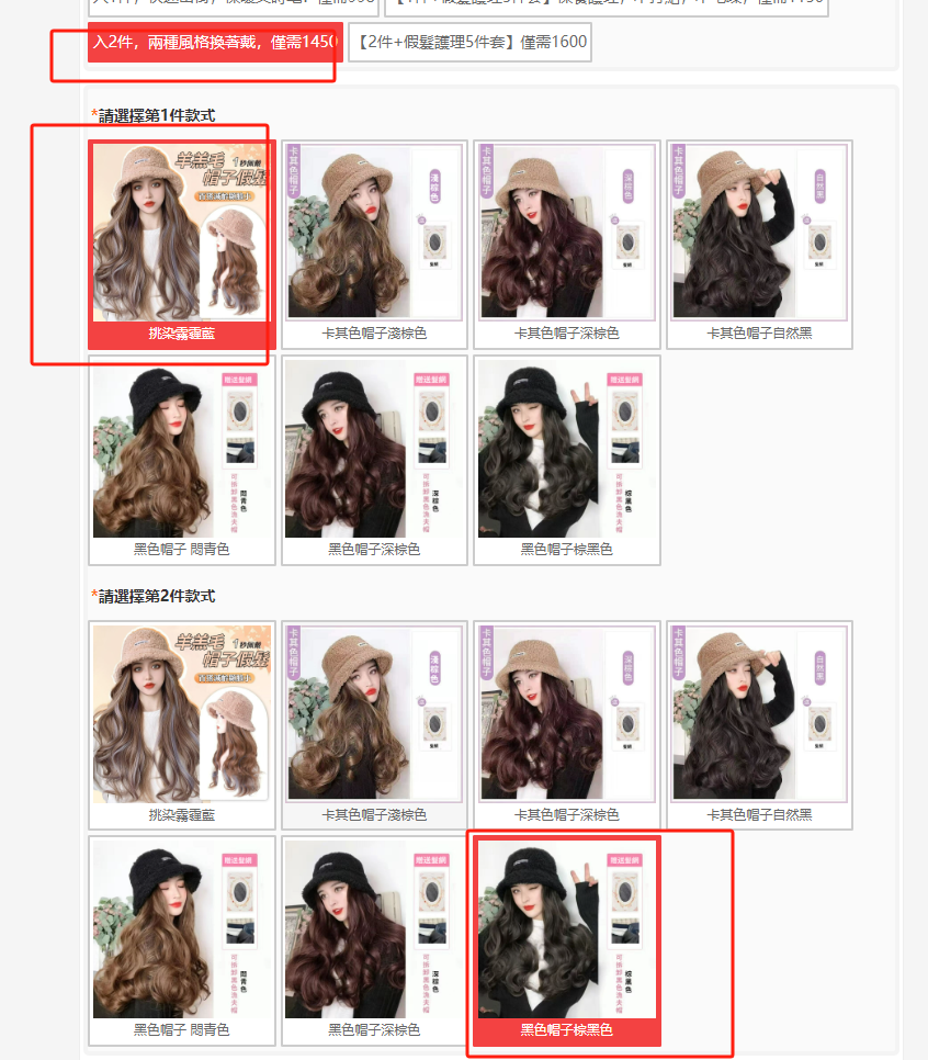 羊羔毛帽假髮 (挑染霧霾藍 +黑色帽子棕黑色)