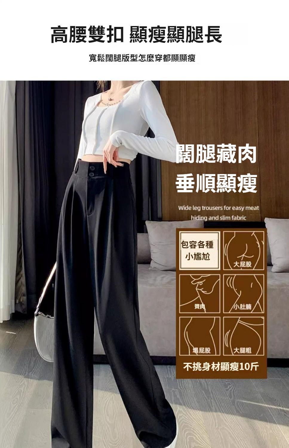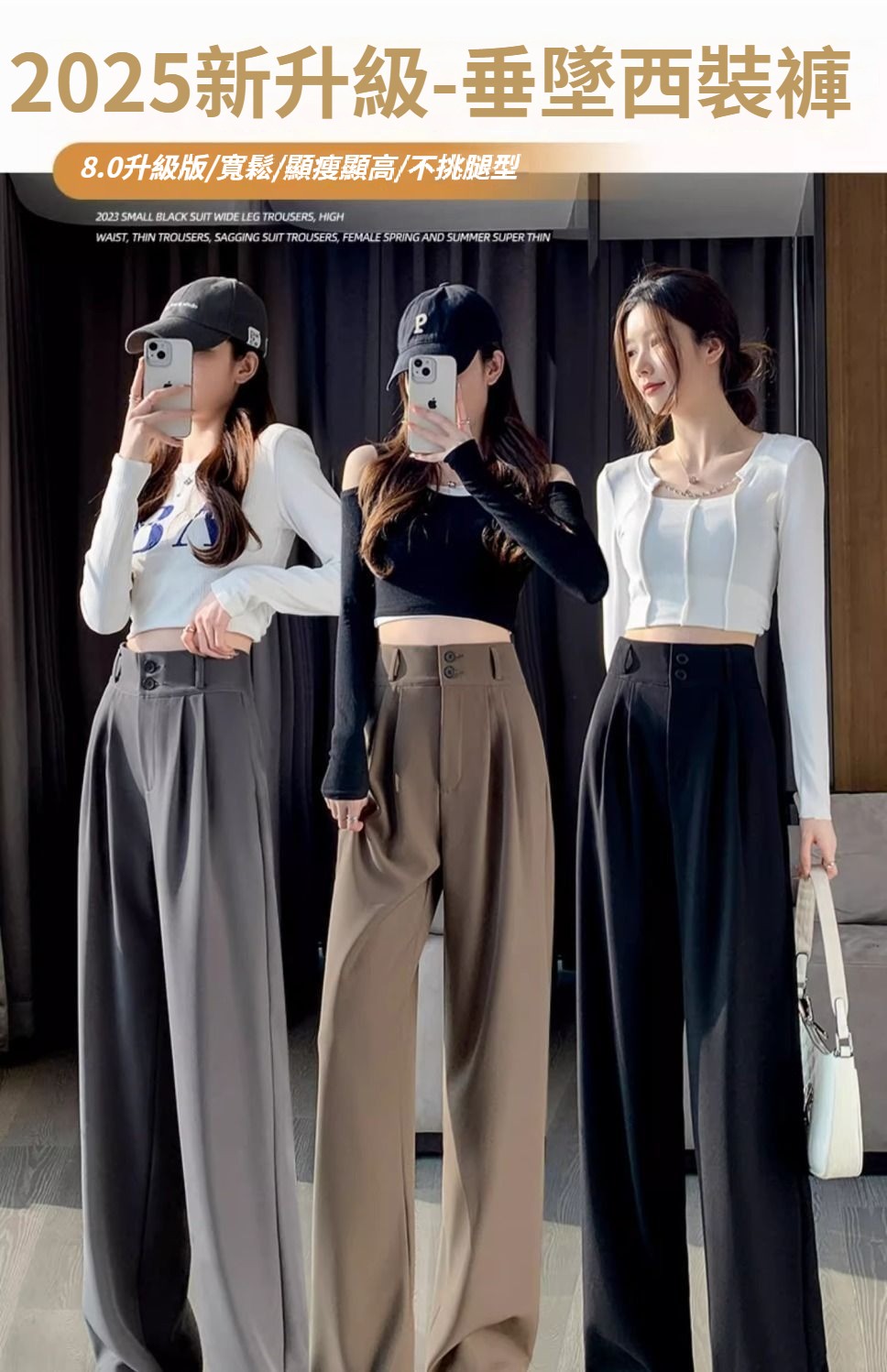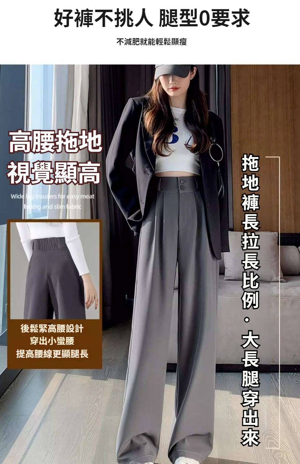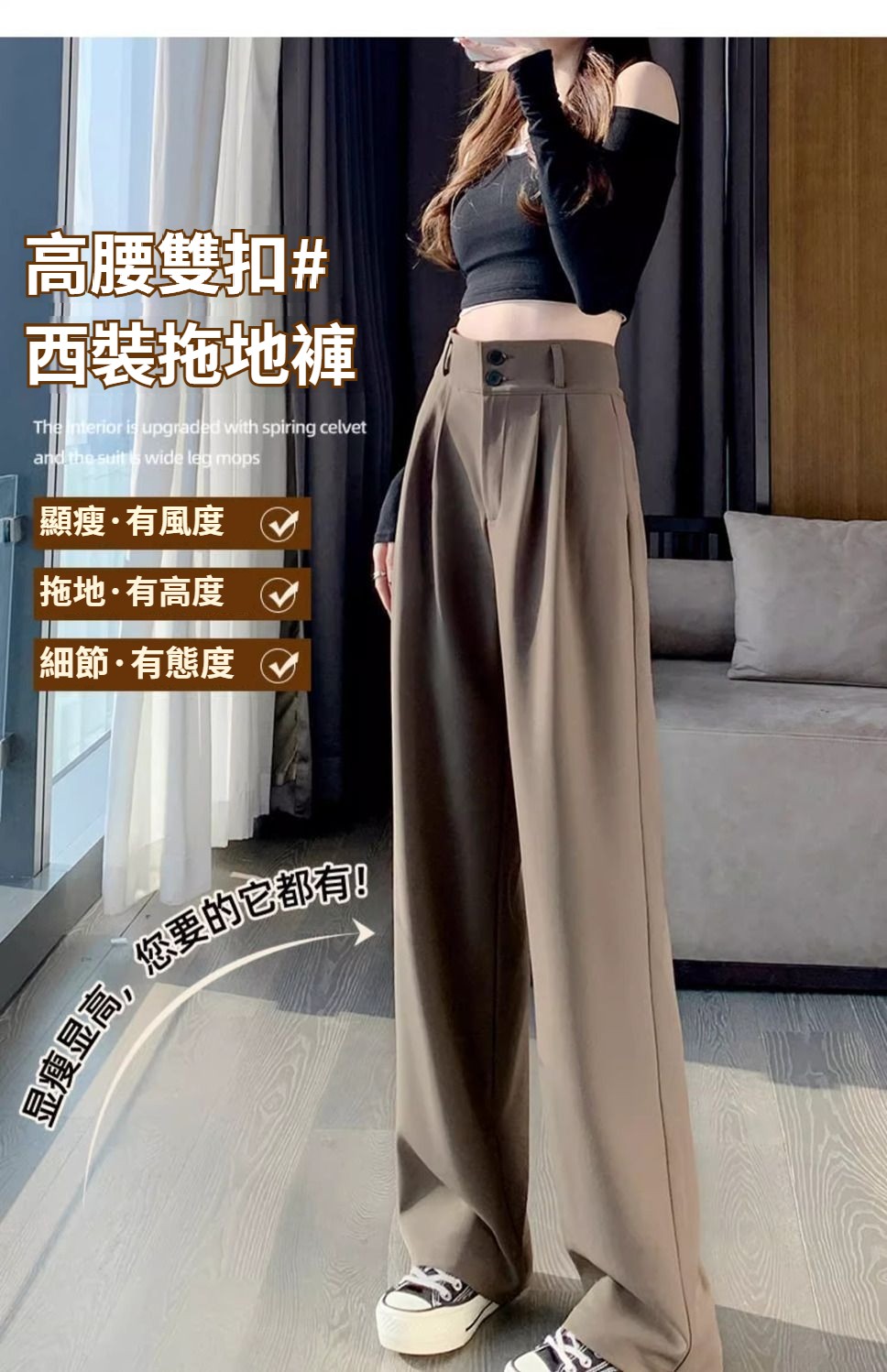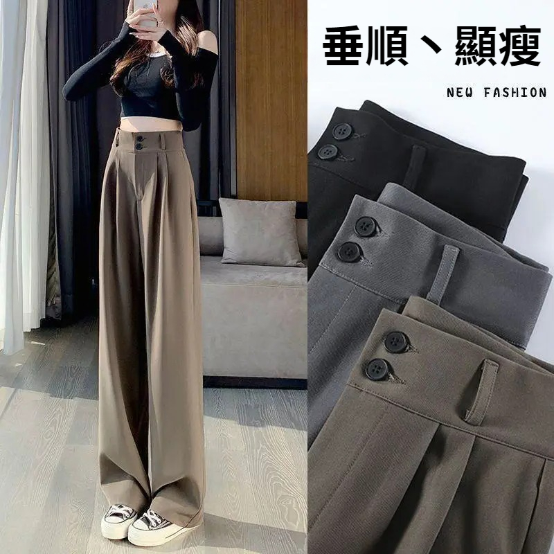 第 1 件 : 闊腿褲女春秋高腰顯瘦垂感梨形身材褲子直筒拖地褲休閒西裝褲女