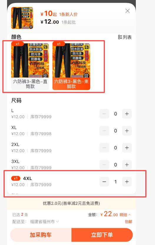 加絨防風褲【4XL】 2條(直筒款*1、束脚款*1)