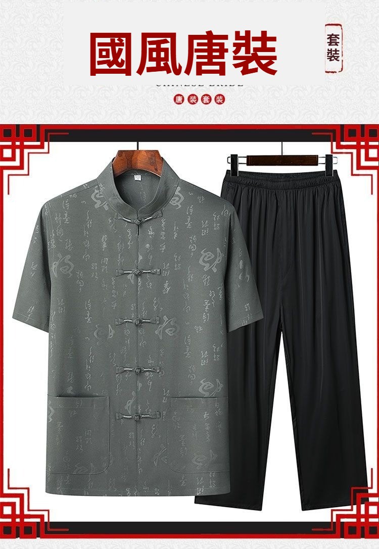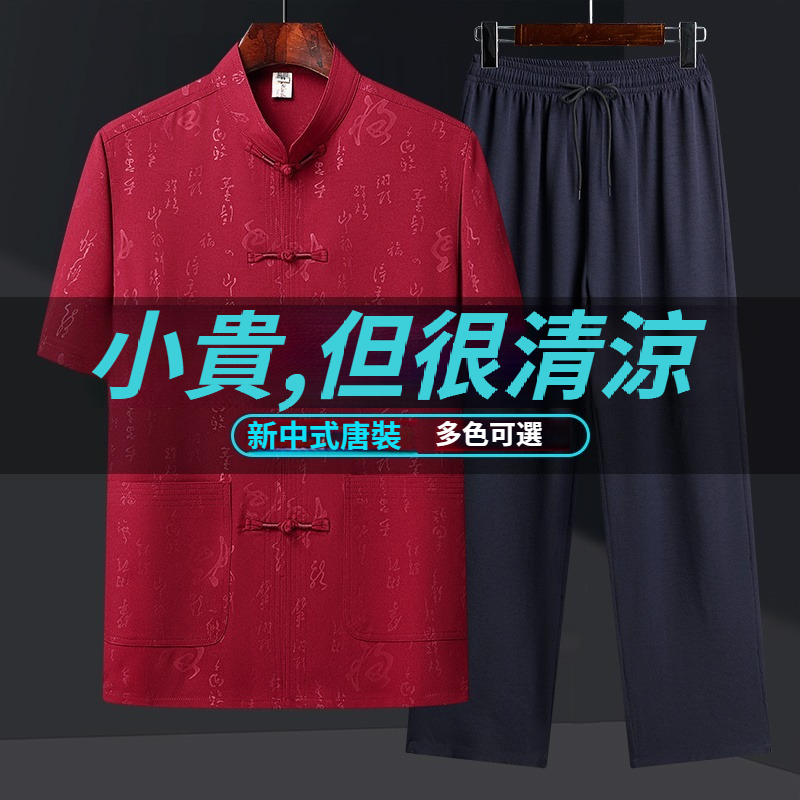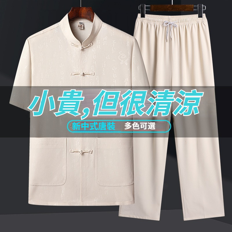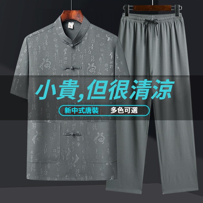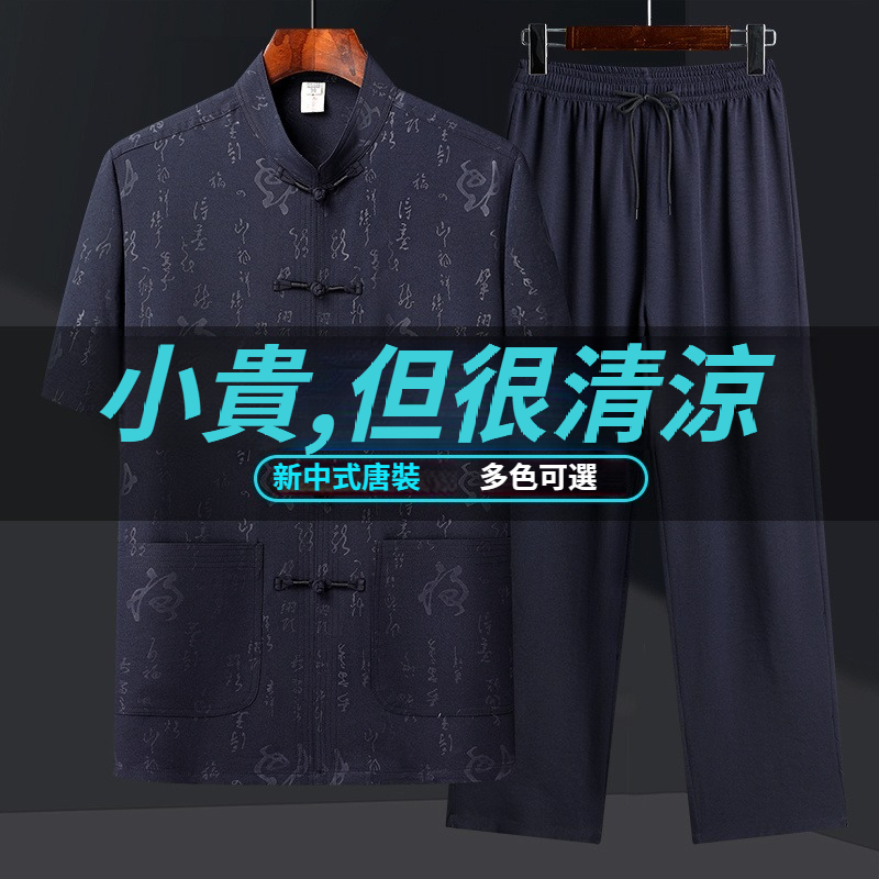 第 1 件 : 新中式男短袖套裝休閒薄款夏裝中老年人漢服國風男裝新中式男裝