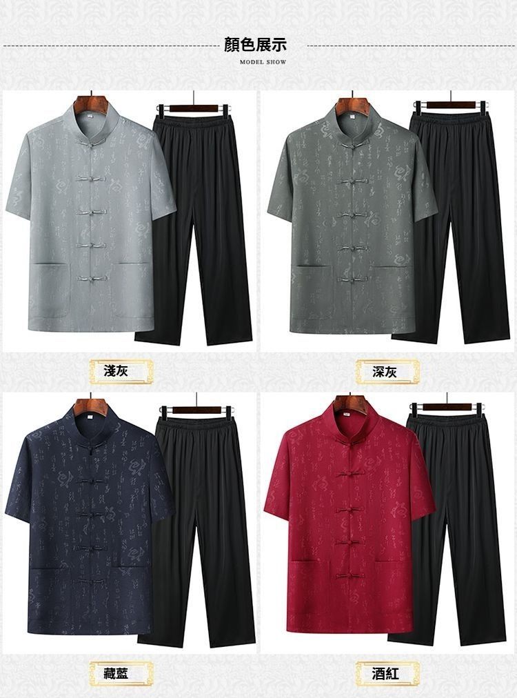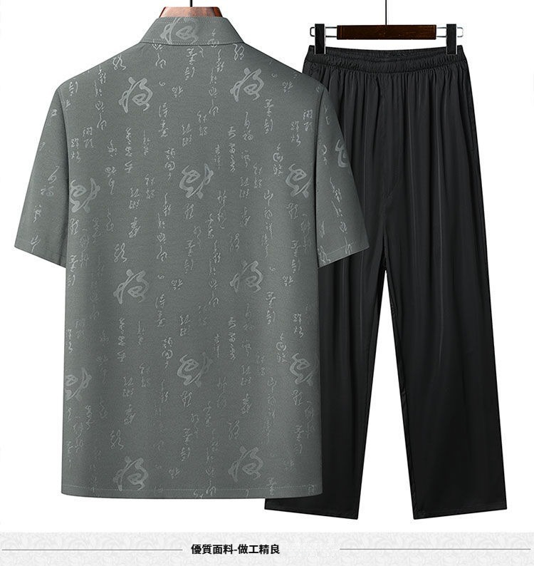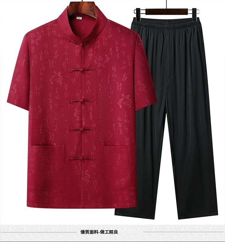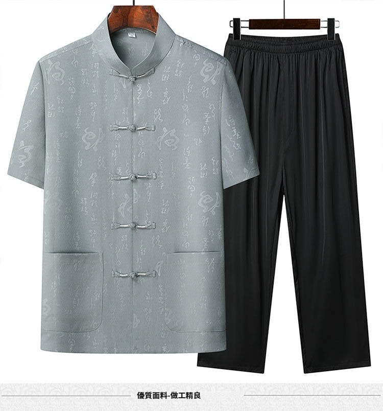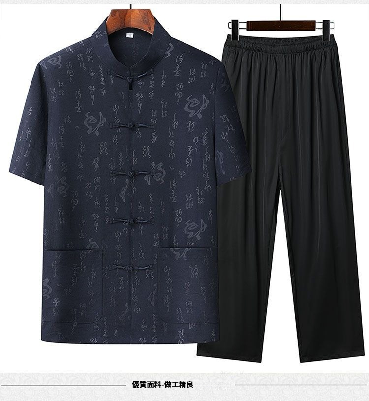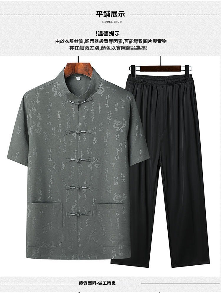第 1 件 : 新中式男短袖套裝休閒薄款夏裝中老年人漢服國風男裝新中式男裝
