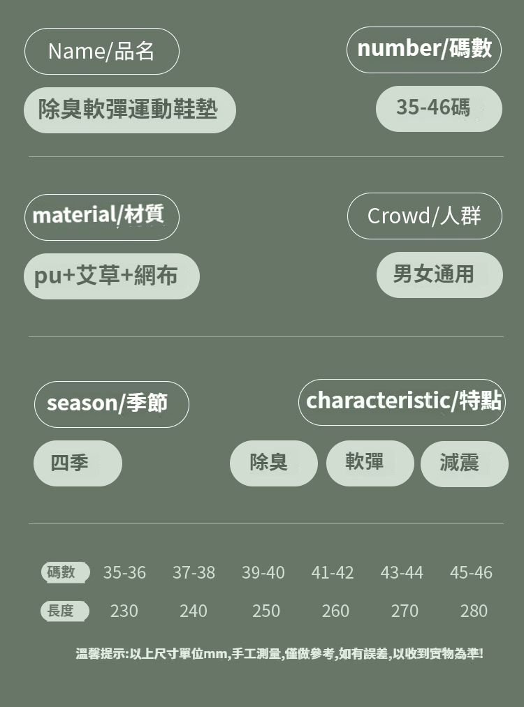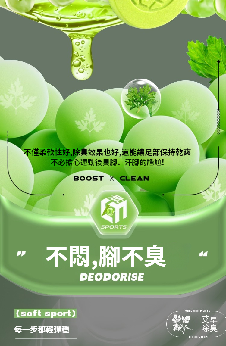 第 2 件 : 除臭運動鞋墊吸汗透氣艾草除臭軟彈舒適運動減震男女軍訓鞋墊