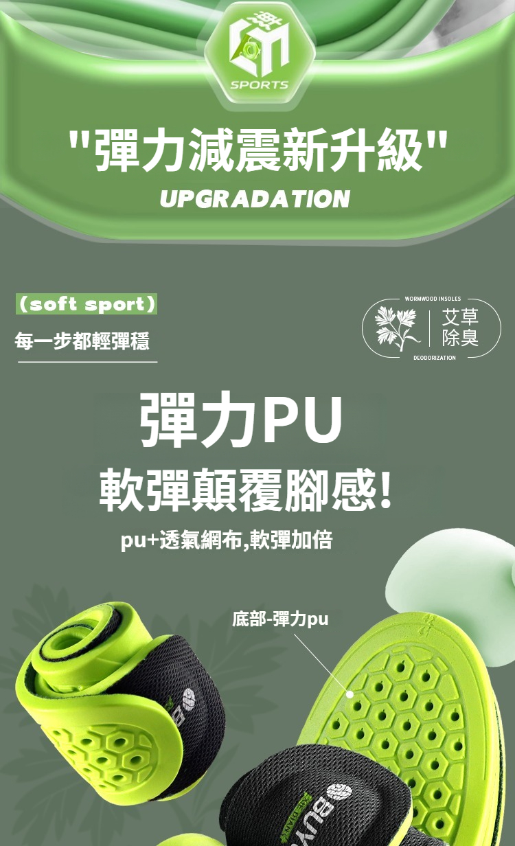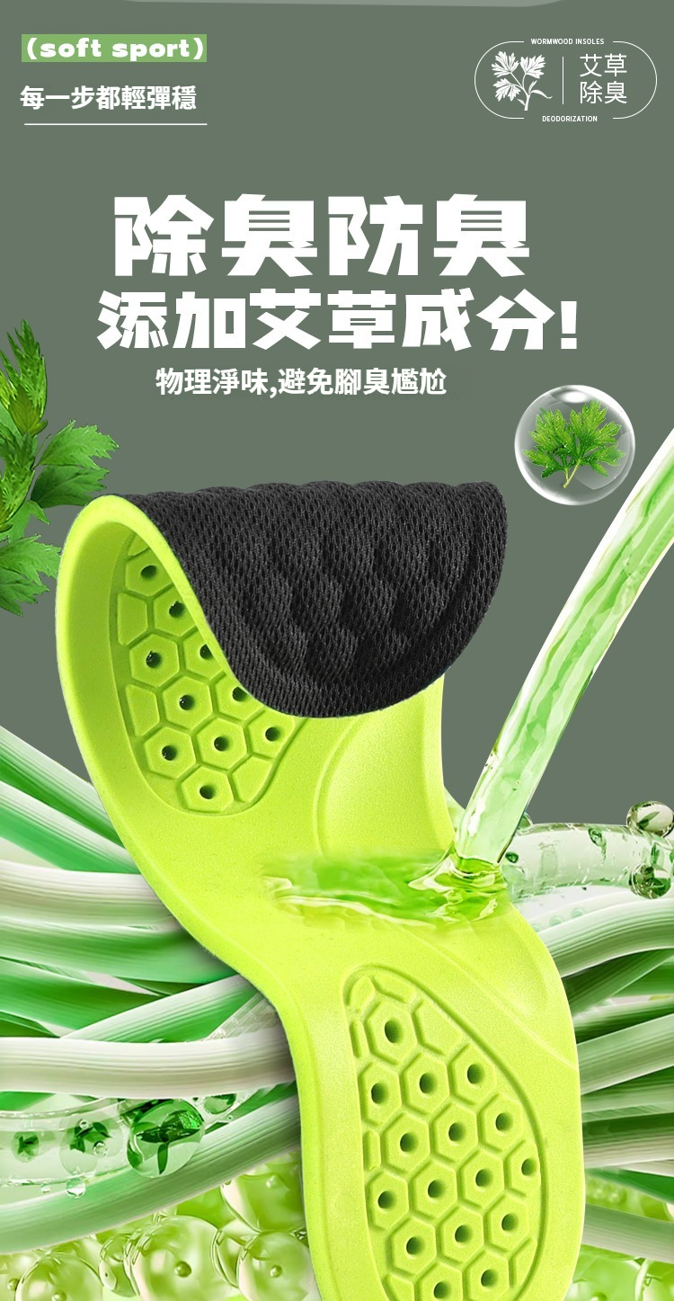 除臭運動鞋墊吸汗透氣艾草除臭軟彈舒適運動減震男女軍訓鞋墊