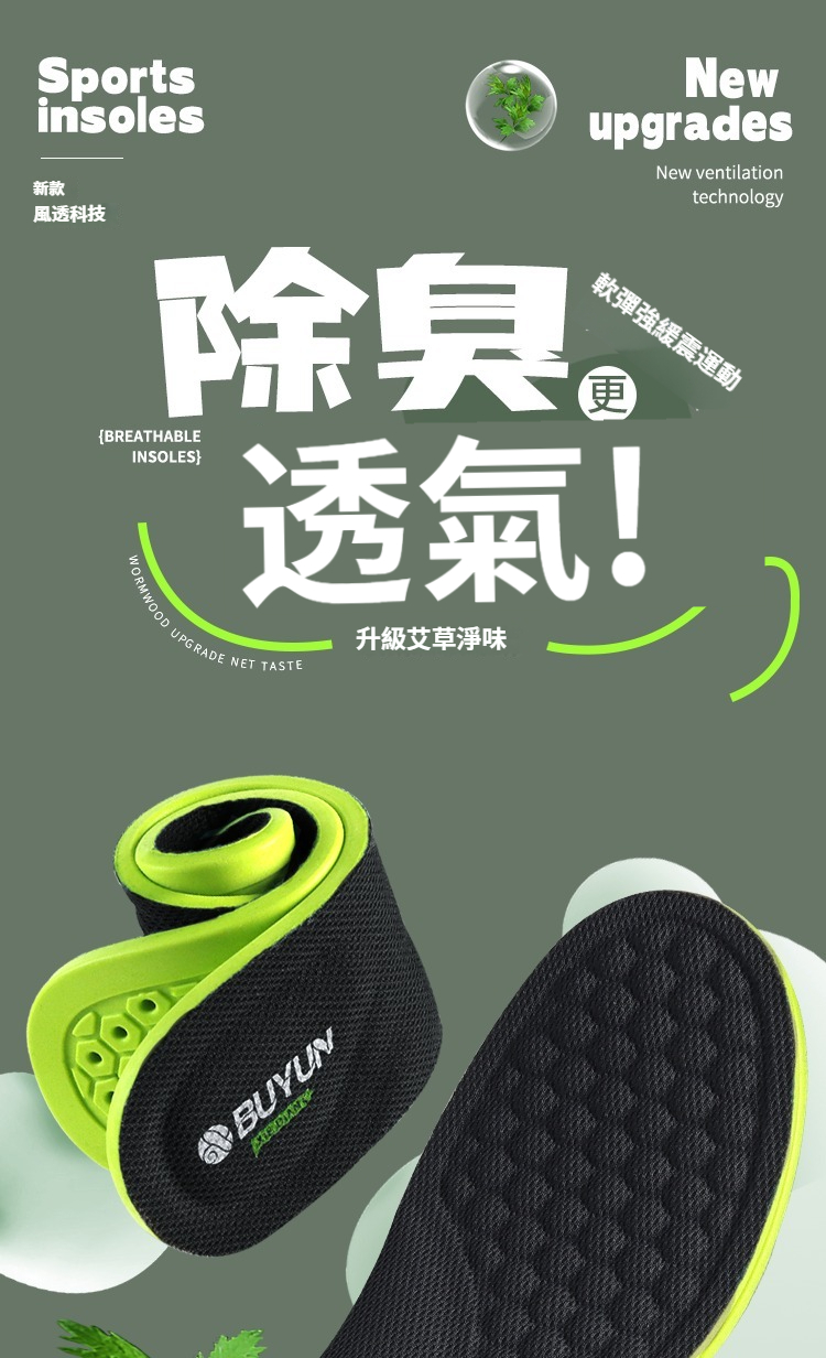 第 1 件 : 除臭運動鞋墊吸汗透氣艾草除臭軟彈舒適運動減震男女軍訓鞋墊