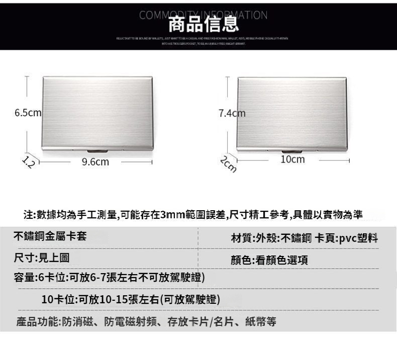 第 2 件 : 防盜刷金屬卡包男士不銹鋼卡包女式防消磁小巧卡盒卡套放駕照