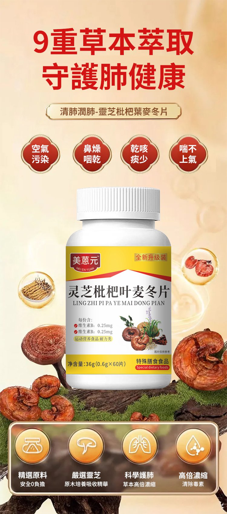 【7天化痰潤肺】靈芝枇杷葉麥冬片