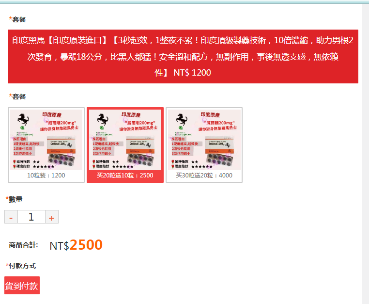 ①印度黑馬30粒+②印度藍P1粒+③生精片1粒+④紅蝌蚪1粒