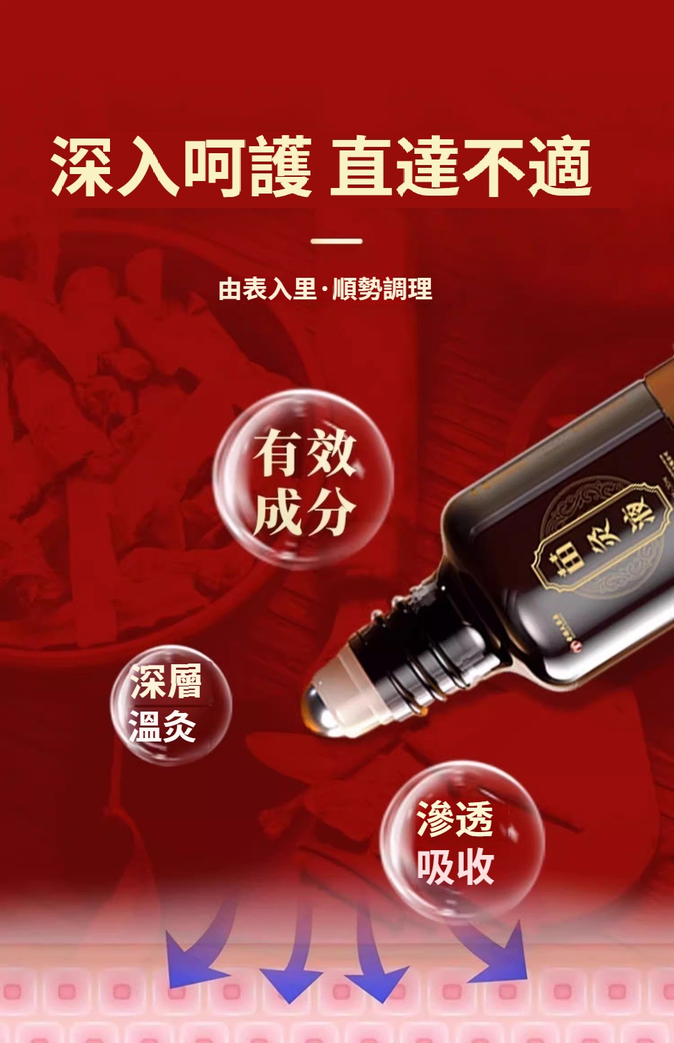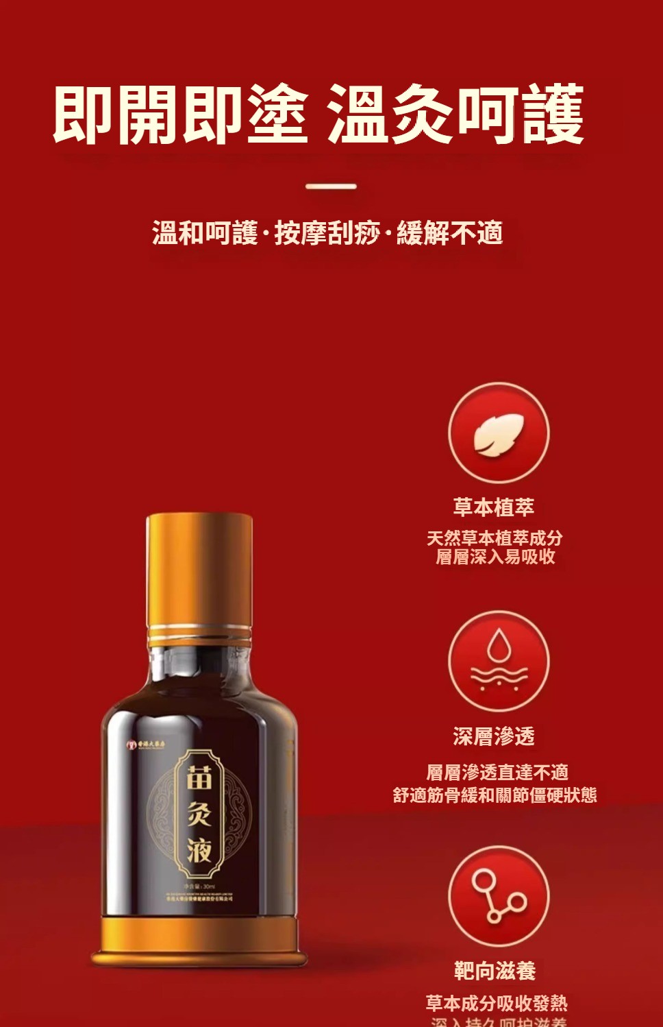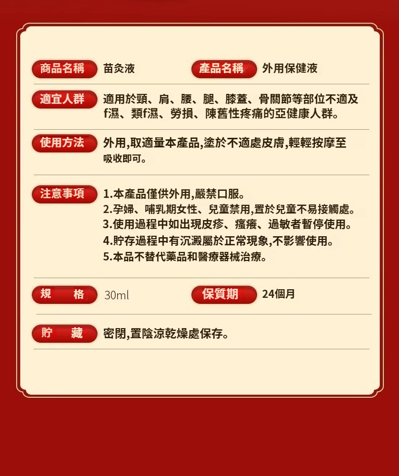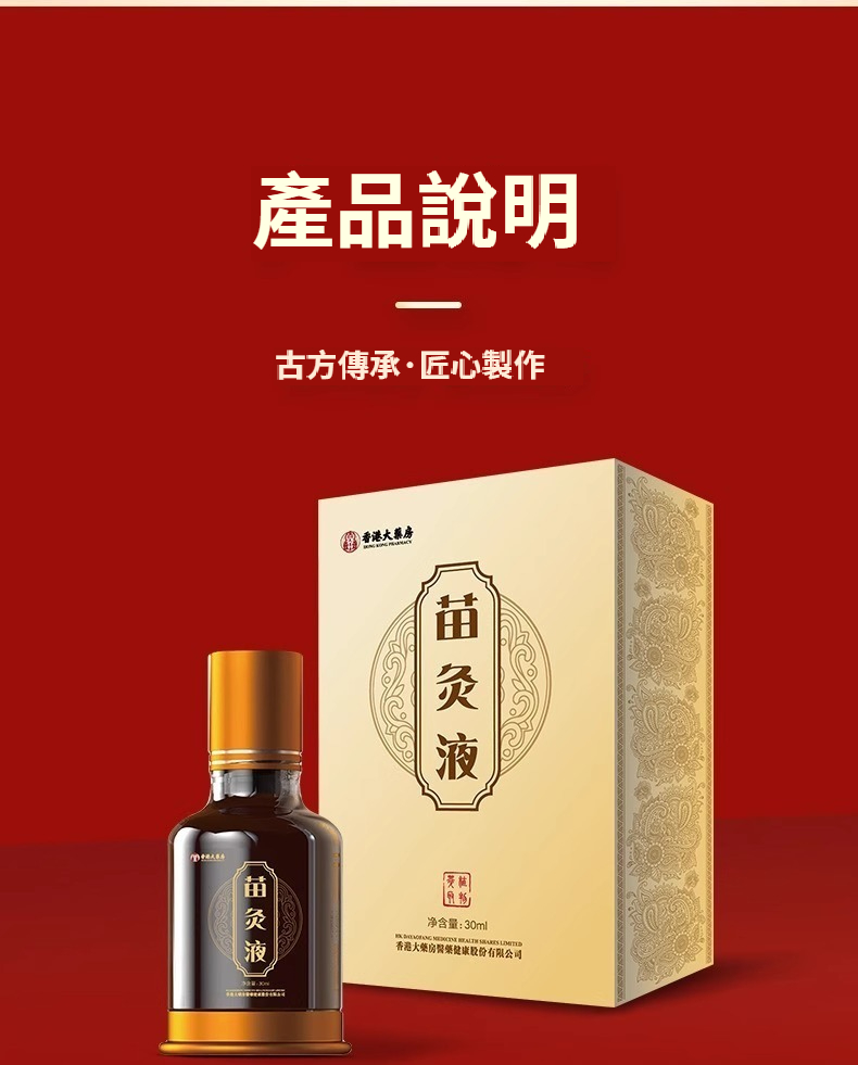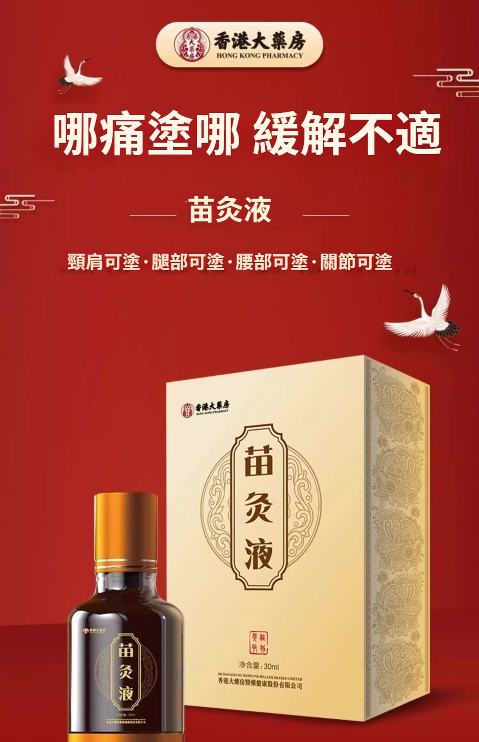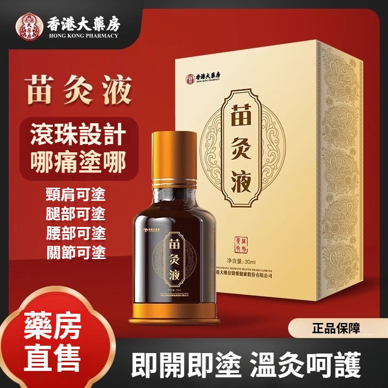 香港大藥房 苗灸液滾珠草本通絡頸肩腰腿背關節不適按摩液30ml