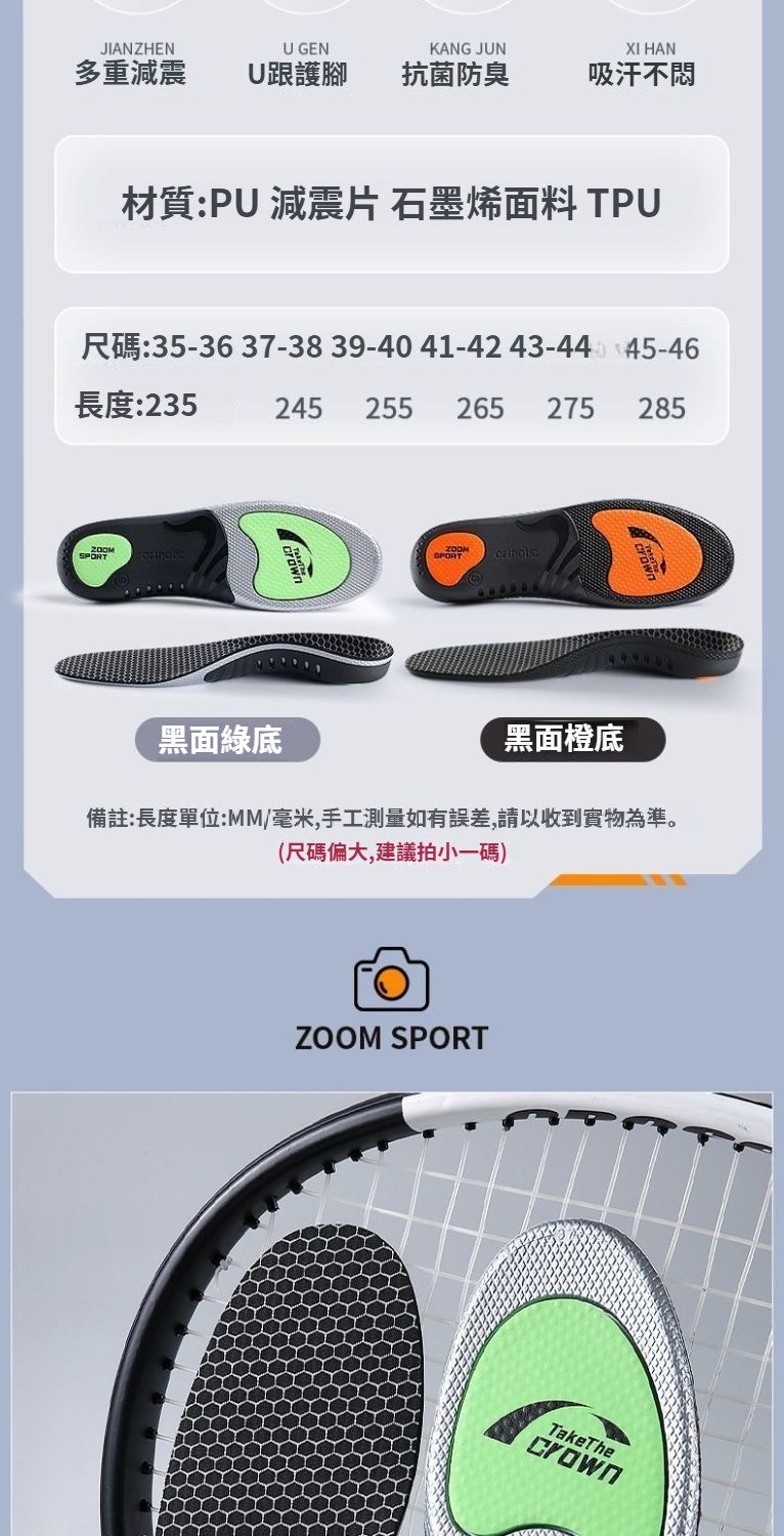 第 1 件 : 運動鞋墊男足弓支撐高彈減震女久站不累踩屎感防痛吸汗防臭