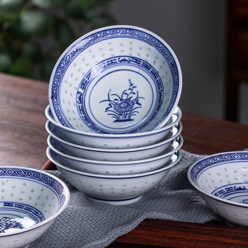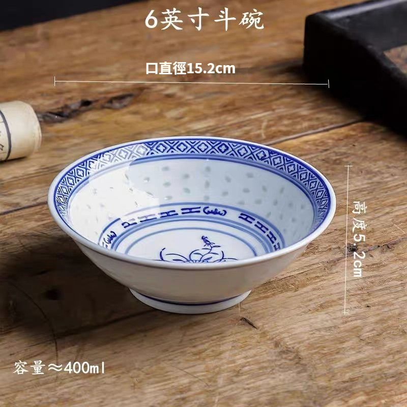 蘭花青花瓷懷舊家用米麵飯碗中式玲瓏復古老式陶瓷釉下彩