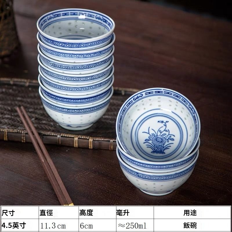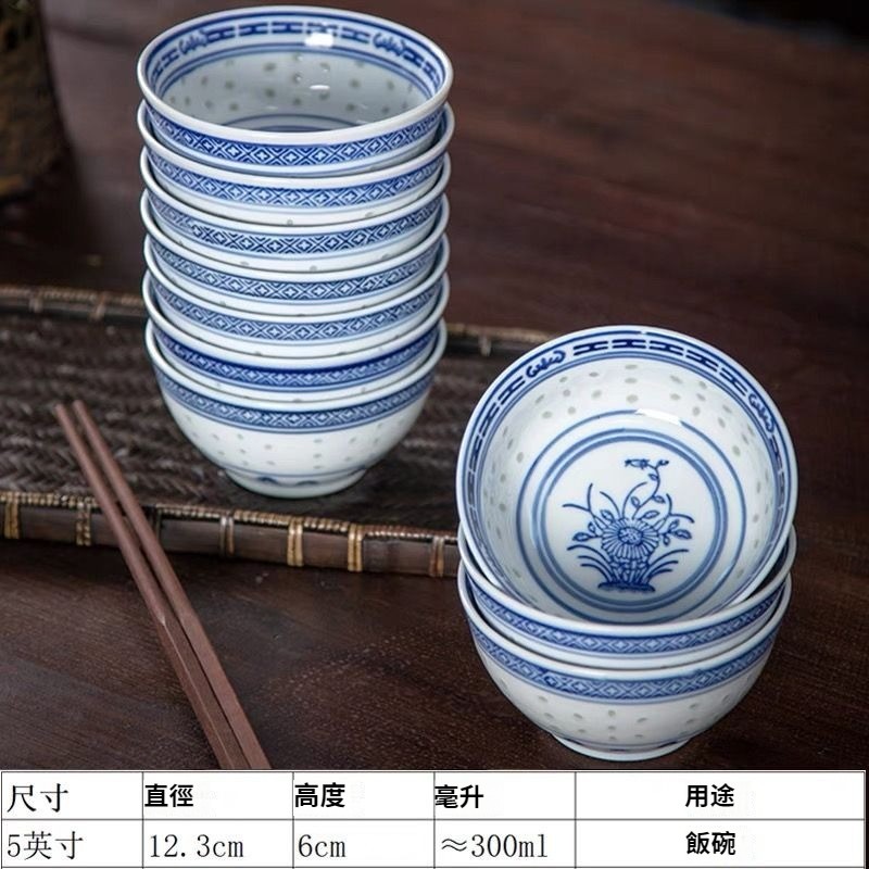 蘭花青花瓷懷舊家用米麵飯碗中式玲瓏復古老式陶瓷釉下彩 NT$ 799