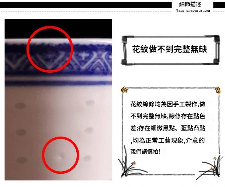 6英寸斗笠款蘭花玲瓏碗2個:999