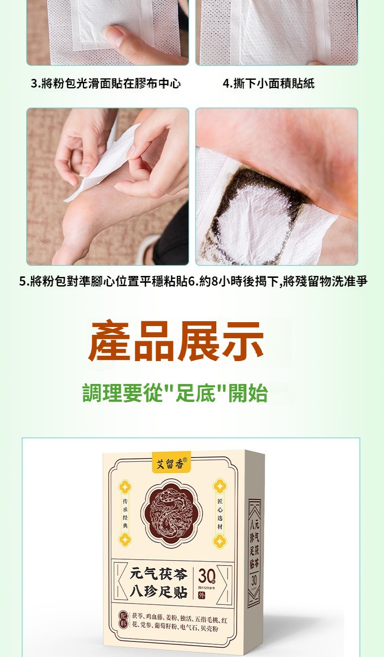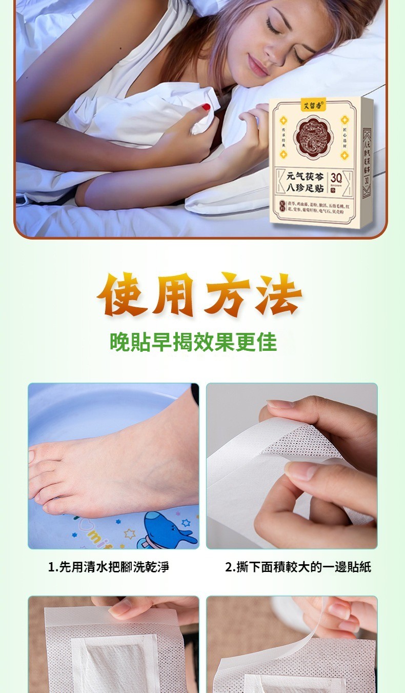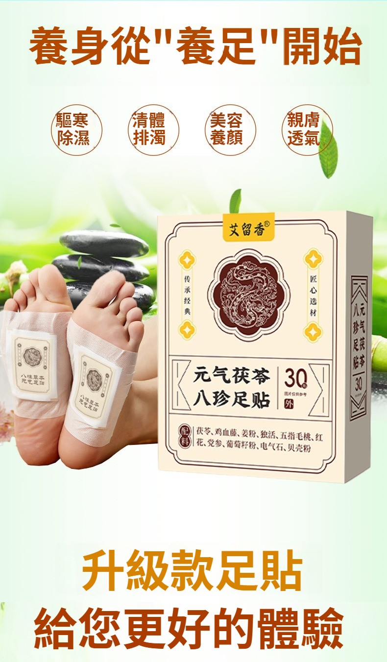 元氣茯苓八珍足貼睡眠貼艾灸貼腳底貼溫灸貼草本足底貼 QAR 998