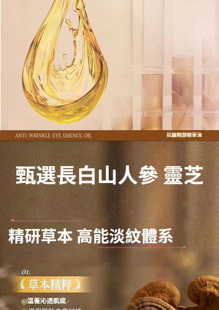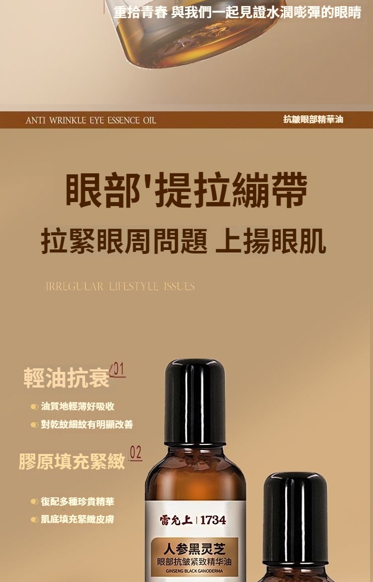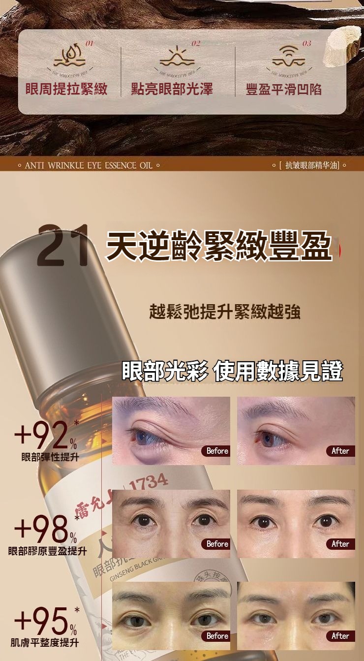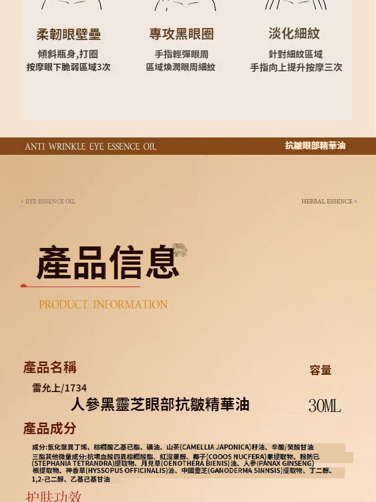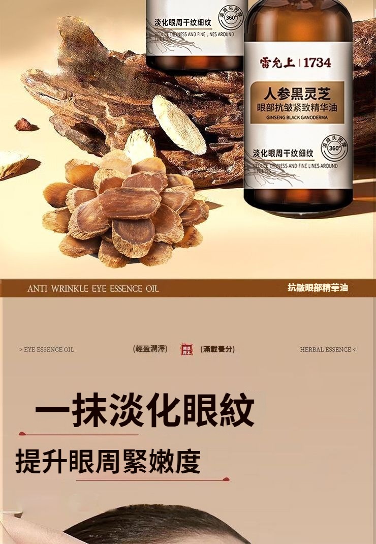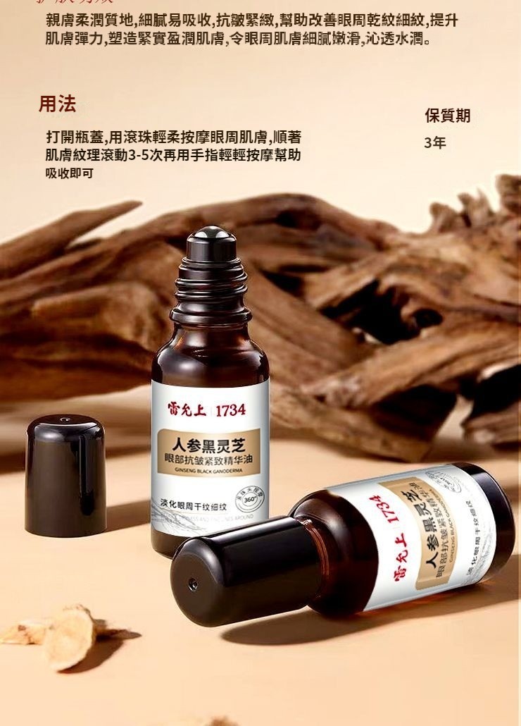 人參黑靈芝眼部抗皺緊致精華油、去黑眼圈去眼袋正品去細紋護眼提拉緊致醫抗老眼部