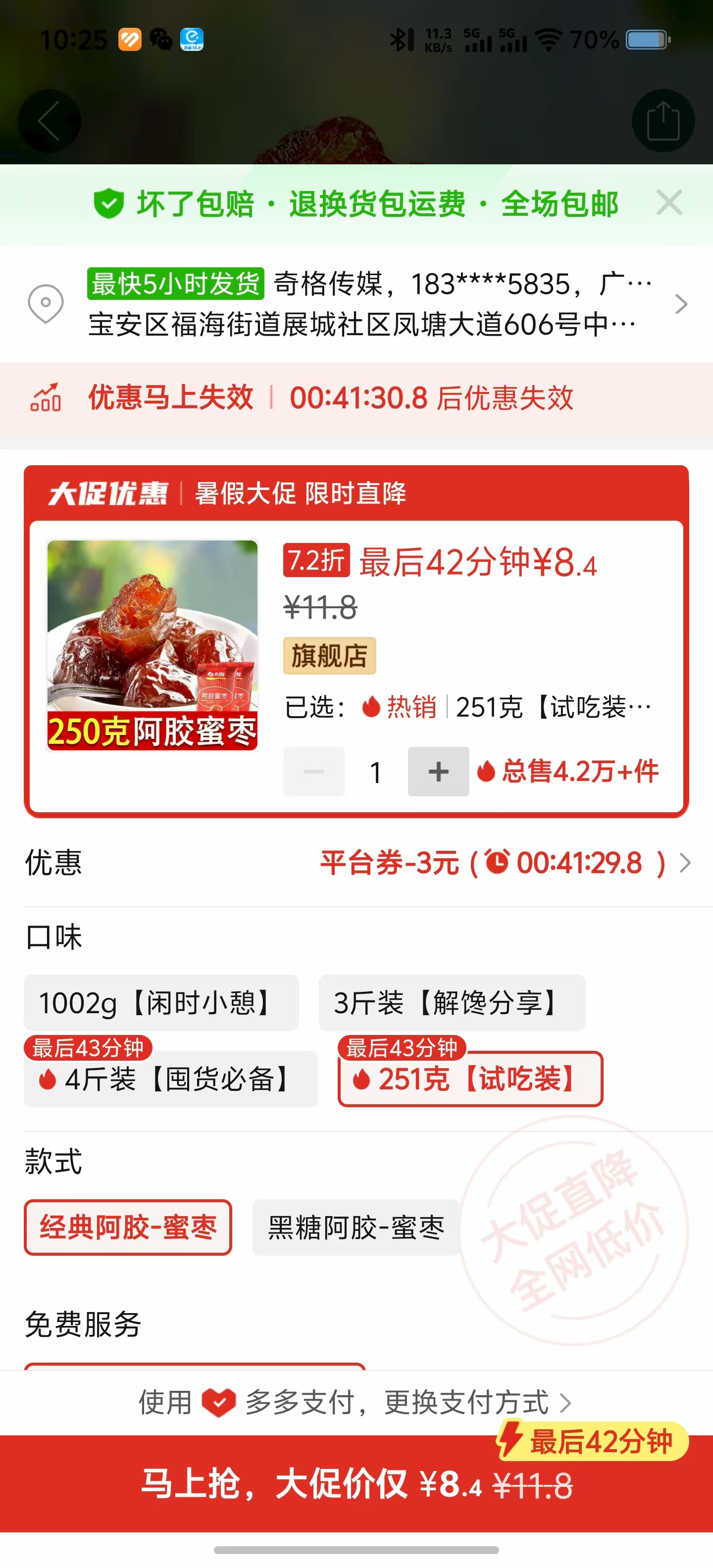①鹹金桔幹510g【五組】+②阿膠蜜棗250g【一袋】阿膠蜜棗:https://mobile.yangkeduo.com/goods1.html?ps=MPnIXEOWbc