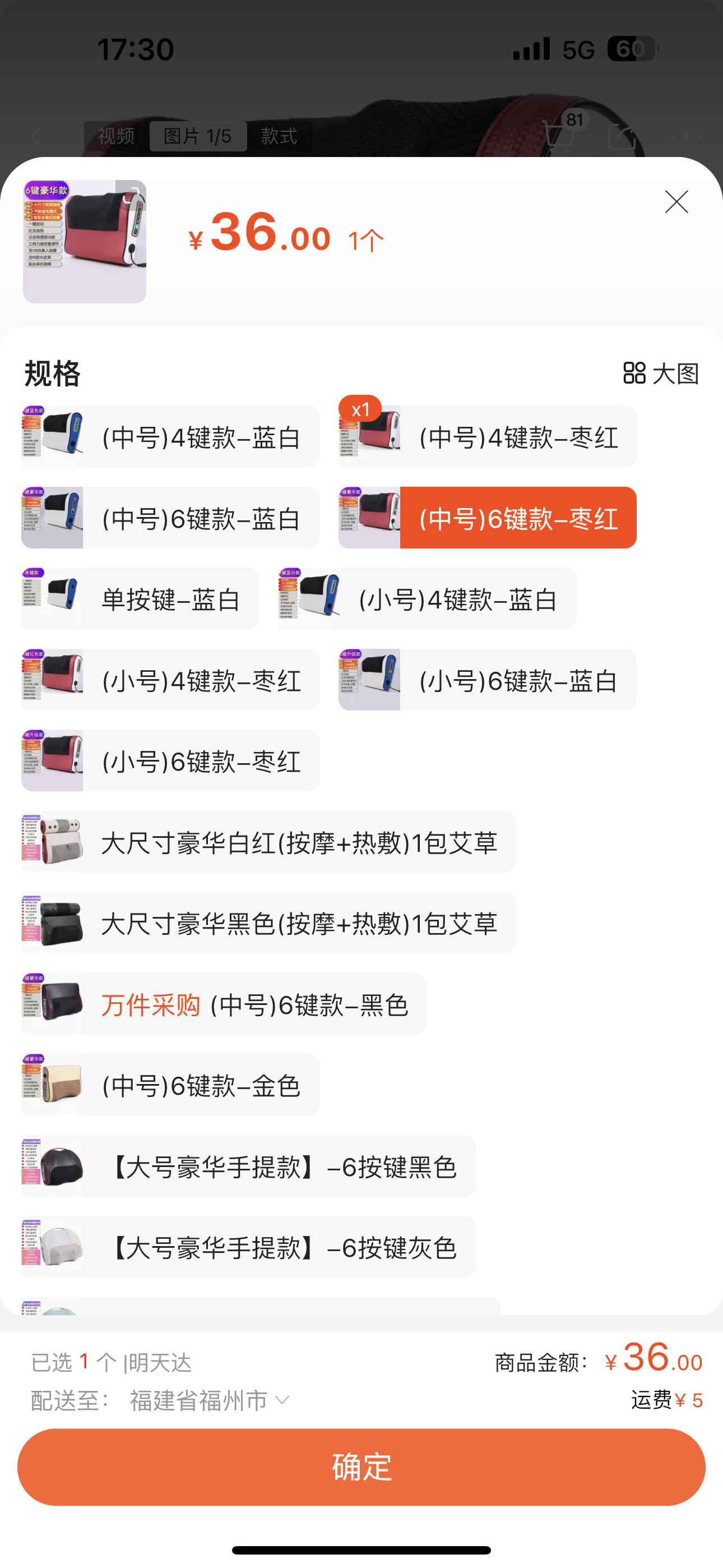 頸椎按摩器中號6鍵款-棗紅色美規版