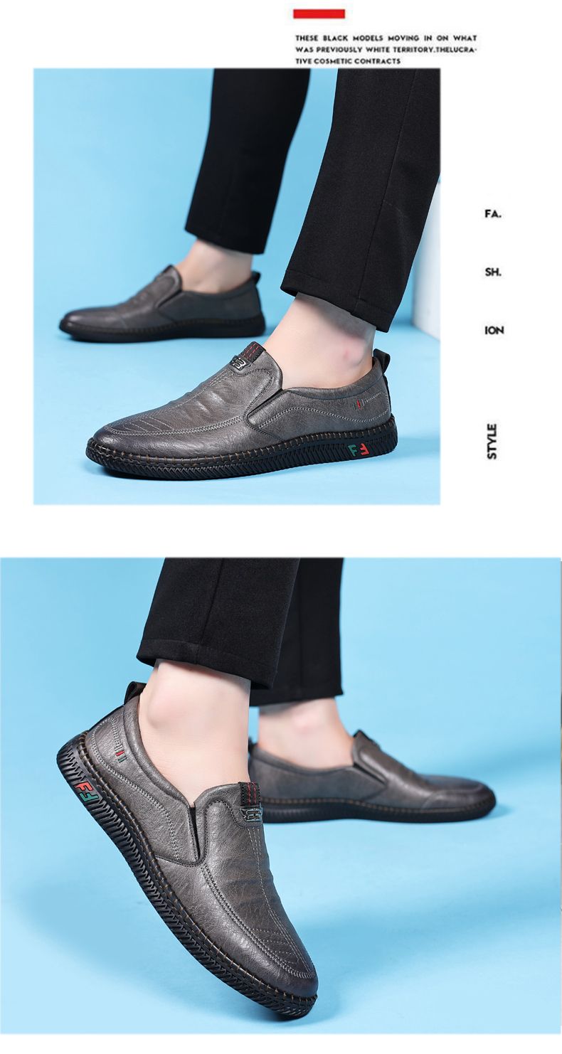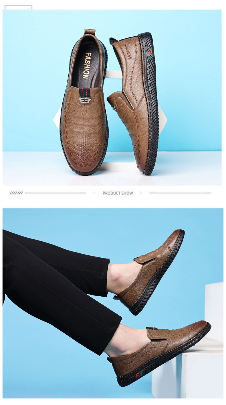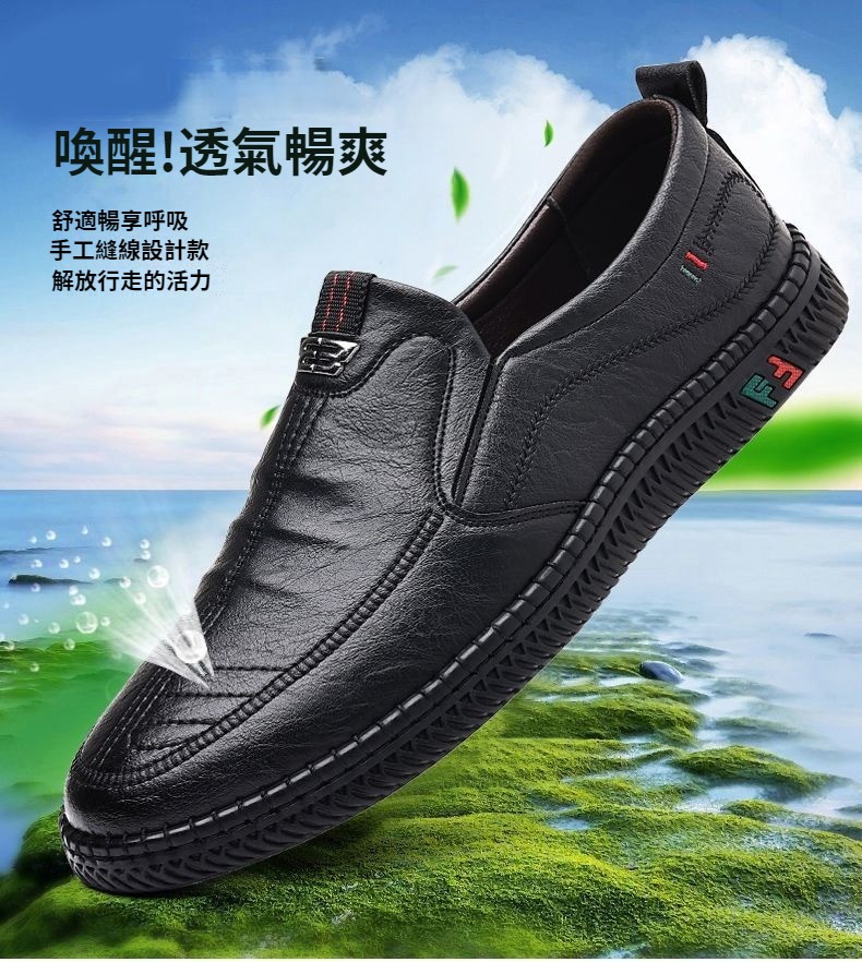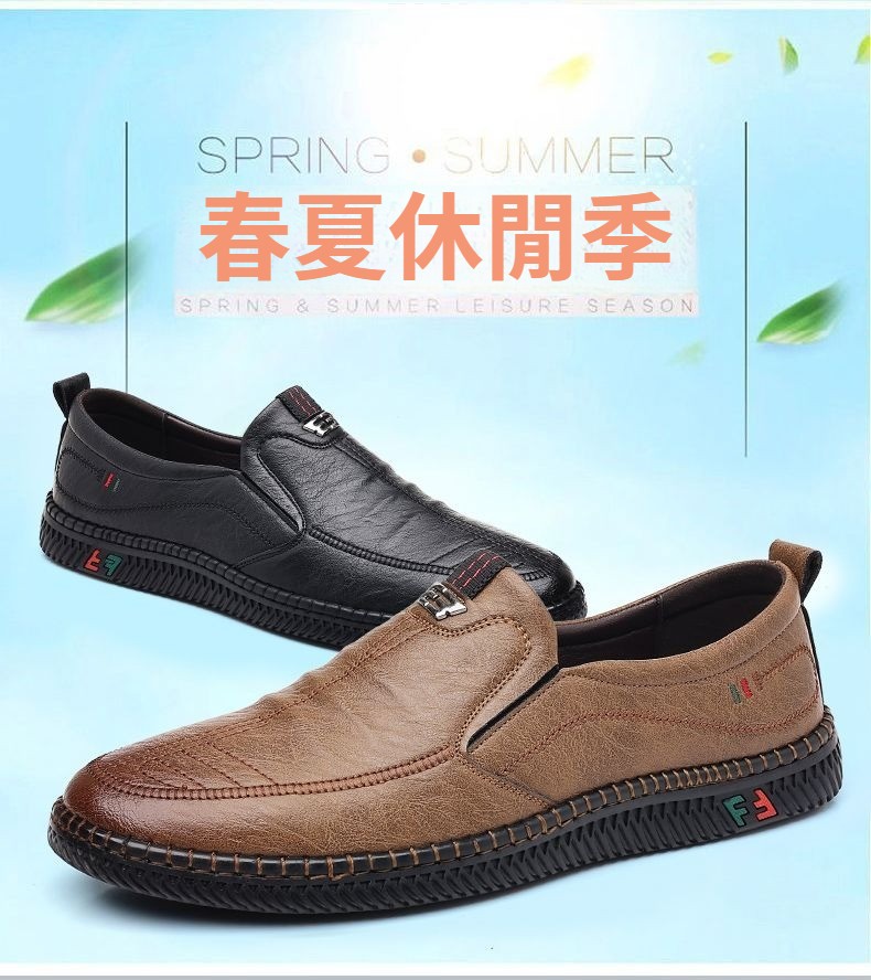 第 2 件 : 男鞋新款休閑皮鞋男士真皮軟底防滑一腳蹬透氣耐磨駕車鞋子