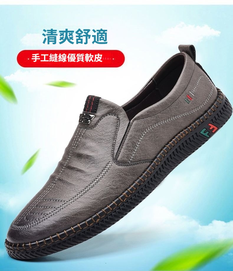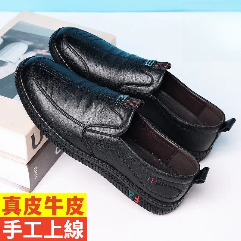 第 1 件 : 男鞋新款休閑皮鞋男士真皮軟底防滑一腳蹬透氣耐磨駕車鞋子