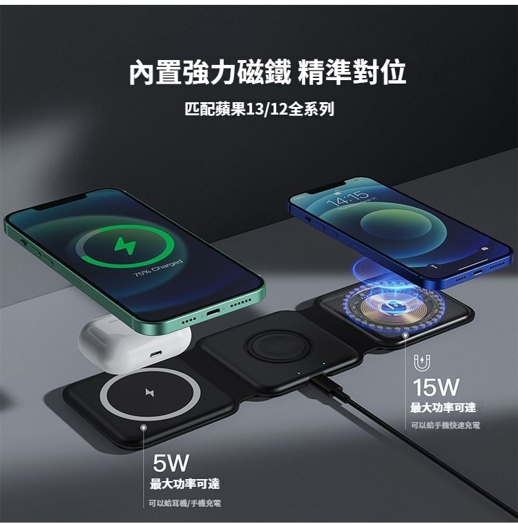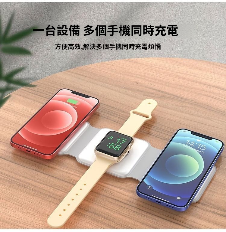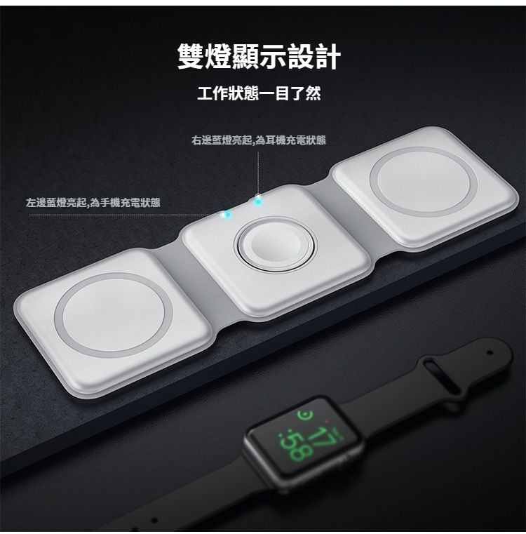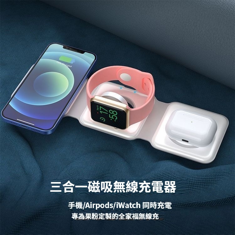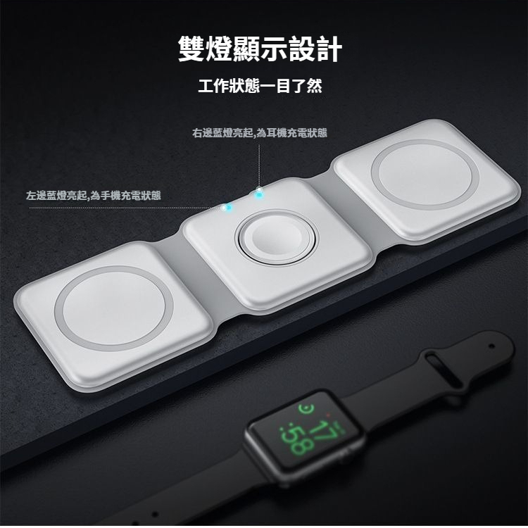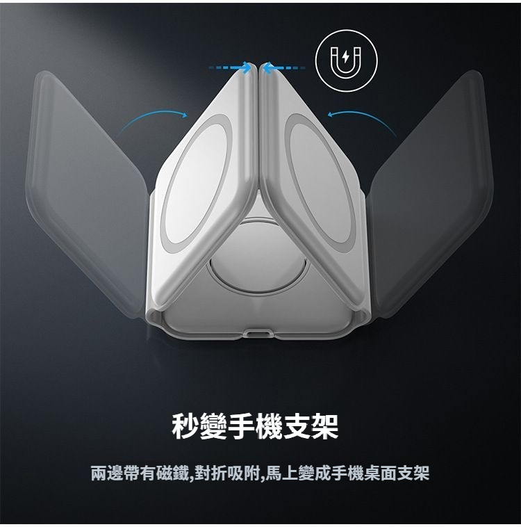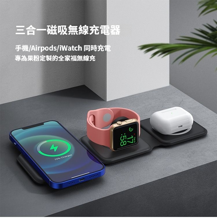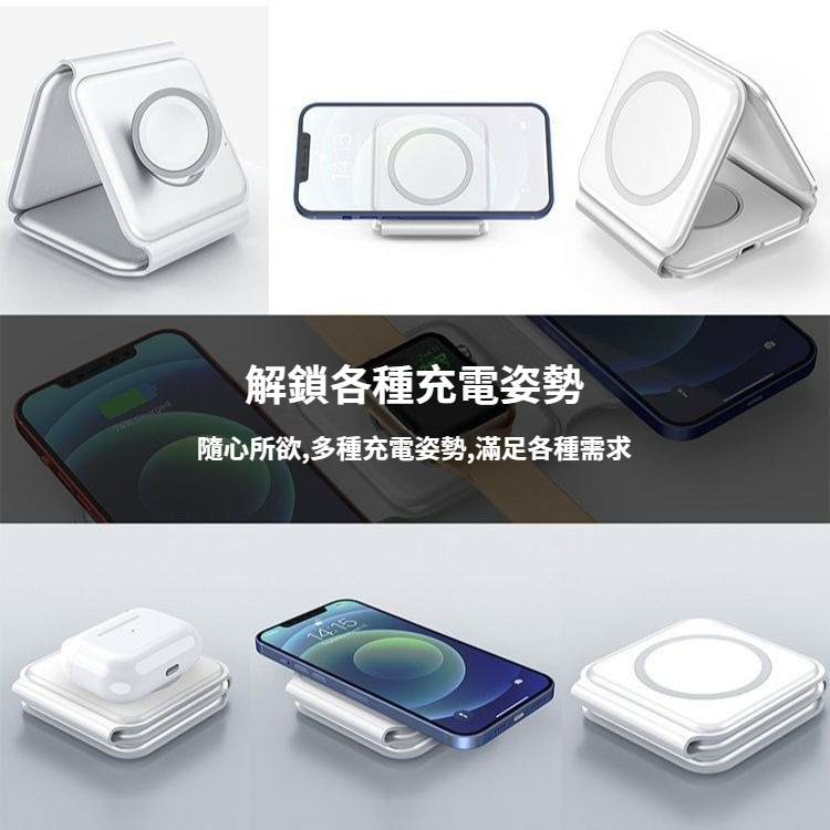 第 1 件 : 【三合一磁吸無線充電摺疊支架】手機/Airpods/iWatch 同時充電!一台設備多架手機充電,摺疊收納,不佔用空間~