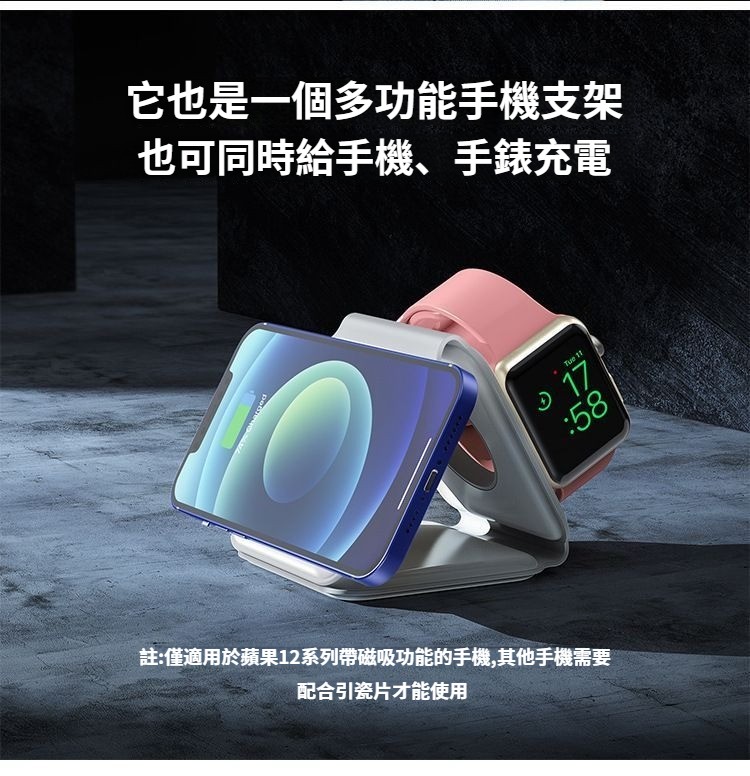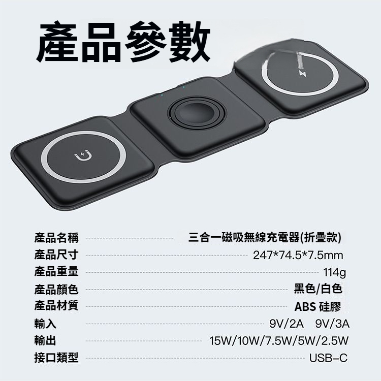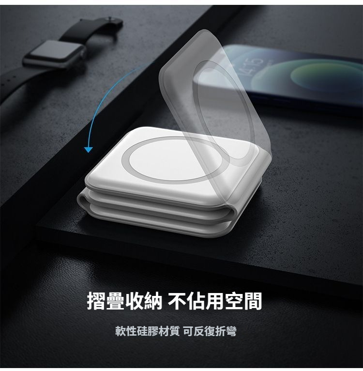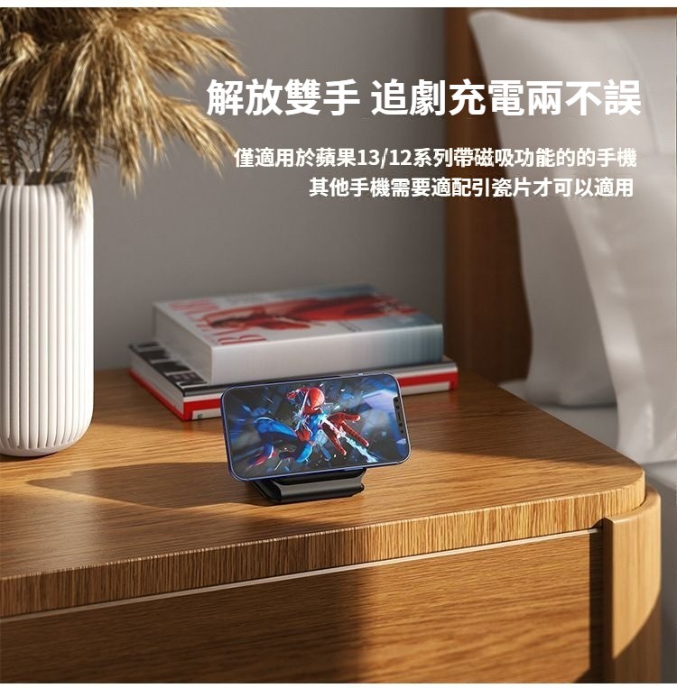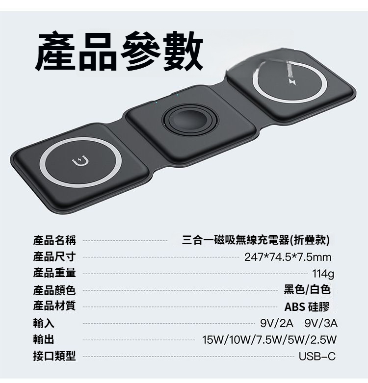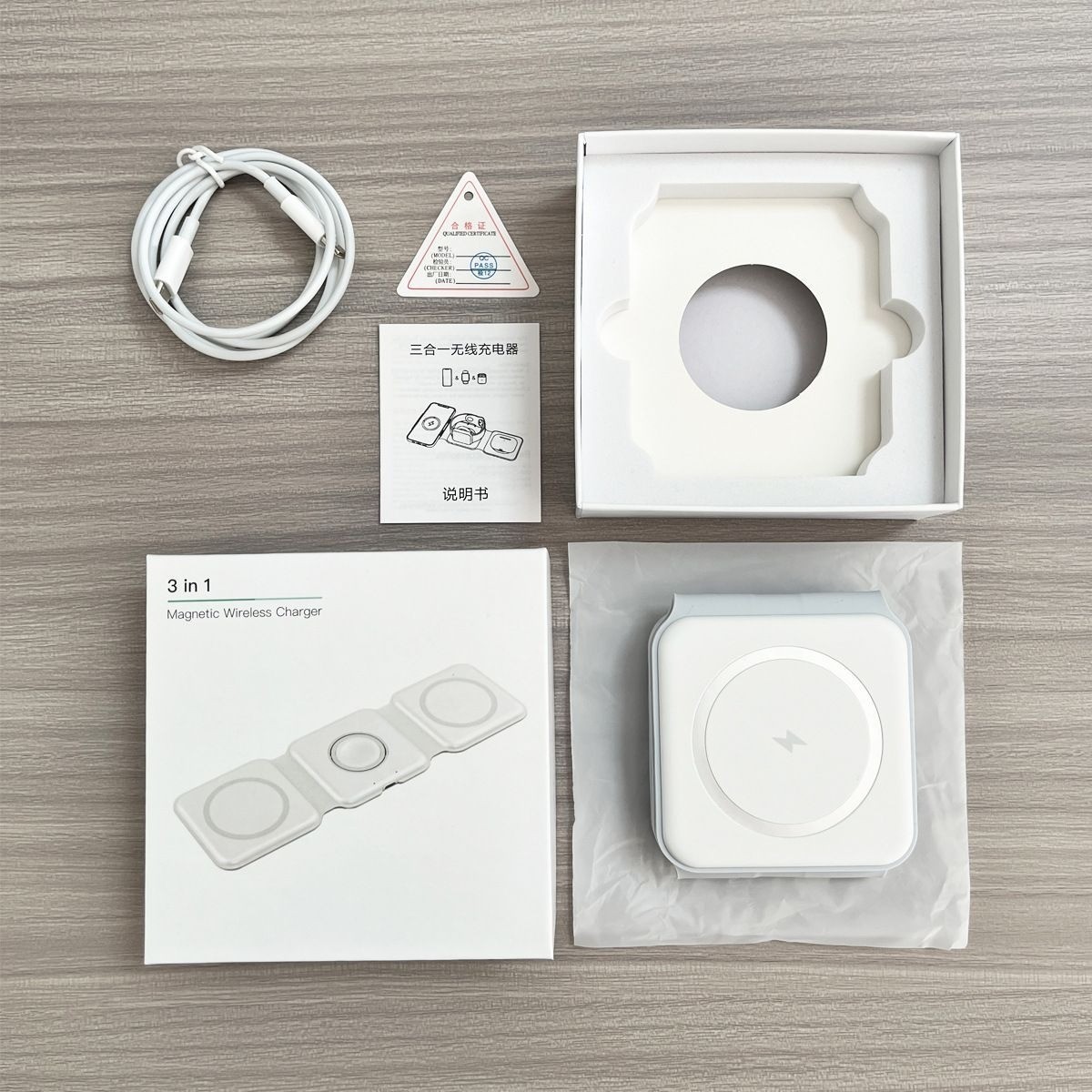 第 1 件 : 【三合一磁吸無線充電摺疊支架】手機/Airpods/iWatch 同時充電!一台設備多架手機充電,摺疊收納,不佔用空間~